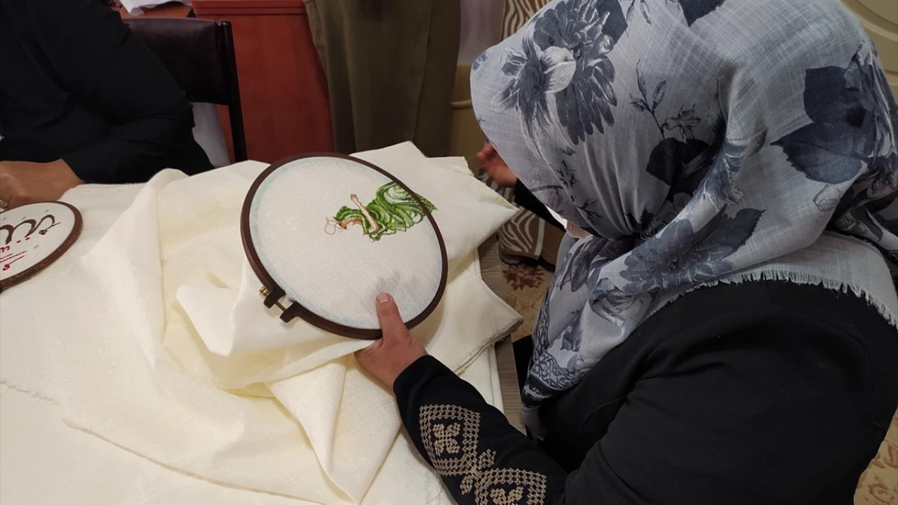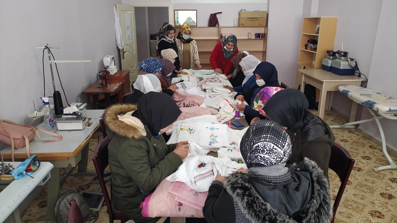 Kadınlardan ilgi gören kursta, sandıklarda bekleyen kanaviçeler birbirinden güzel işlemelerle kullanılabilir hale getiriliyor.