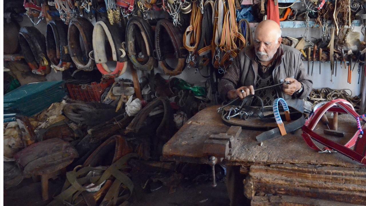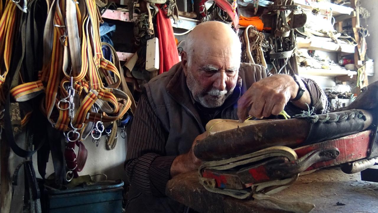 Kars'ın Sarıkamış ilçesinde yaşayan 84 yaşındaki Zeki Dur, unutulmaya yüz tutan saraçlık mesleğini (koşum ve eyer takımı yapıp satma) 60 yılı aşkın süredir devam ettiriyor.