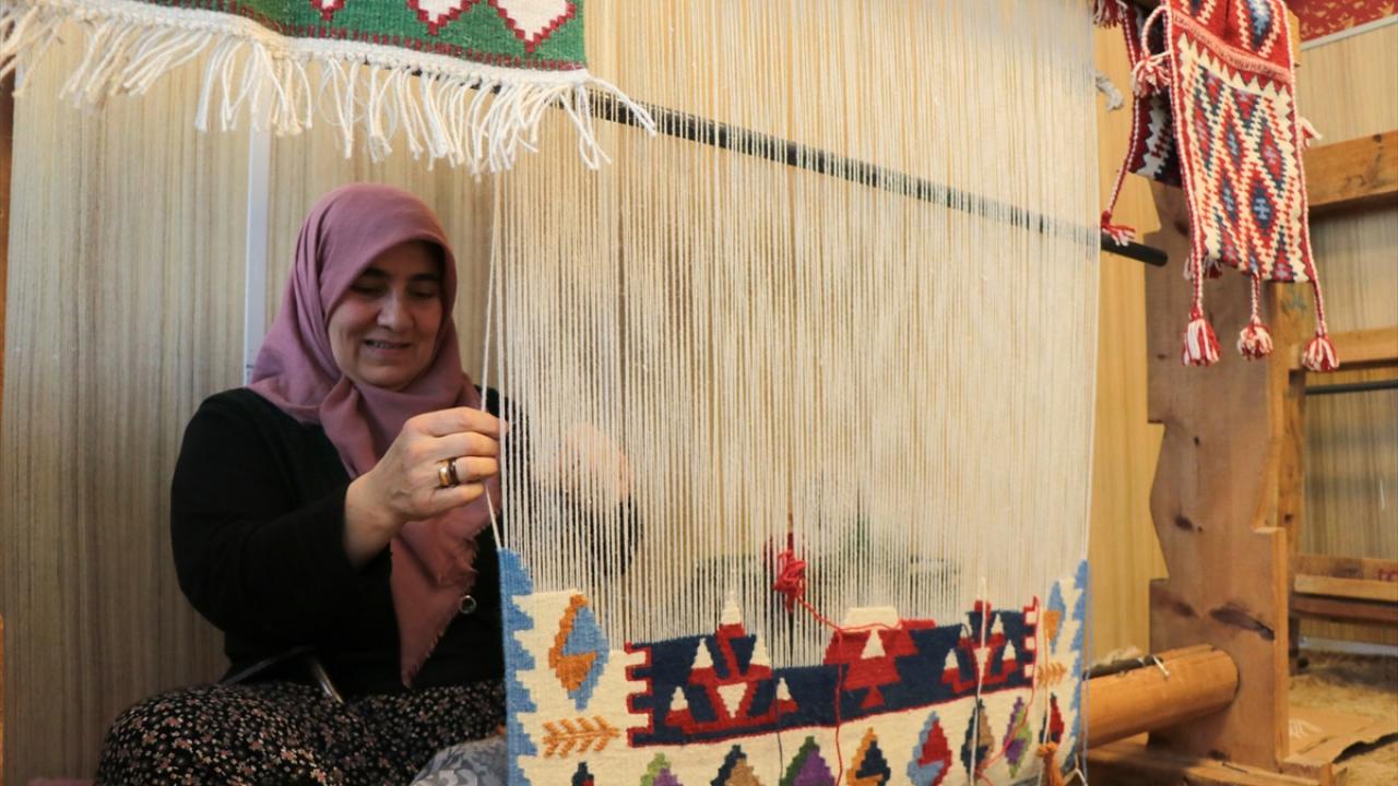 Alkış, 21 yaşına kadar kilim dokuduğunu, evlenince bir süre ara verdiğini anlatarak, İŞKUR`un açtığı kurslara katıldığını, halk eğitim merkezinde usta öğreticilik yaptığını ve girdiği sınavlar sonucu Kültür ve Turizm Bakanlığı Sanatçı Tanıtım Kartı aldığını belirtti.