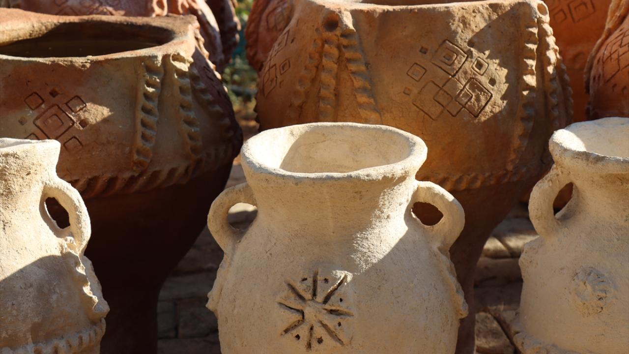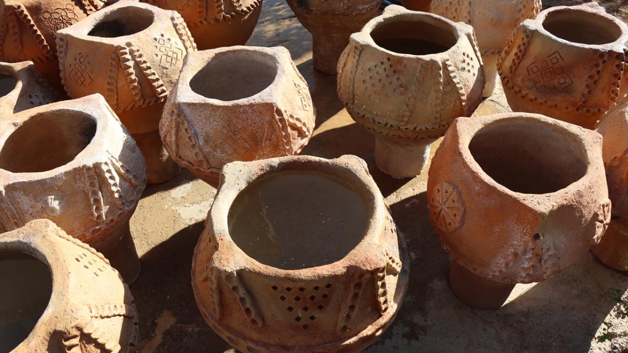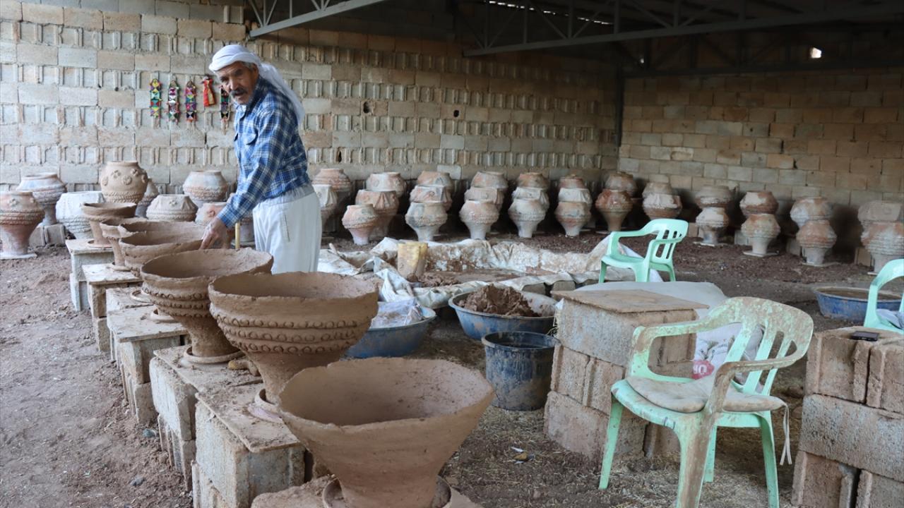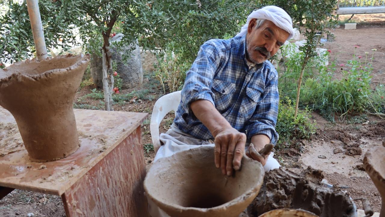 Şanlıurfa'da yaşayan 83 yaşındaki Cuma ve 54 yaşındaki oğlu İzzet Aran, mahallelerinde çıkardıkları kırmızı ve killi topraktan geleneksel su küpü yapıyor.