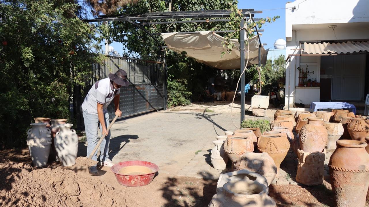 İlerleyen yaşına rağmen maharetli elleriyle çamuru sanata dönüştüren Cuma Aran, oğluyla mahallede çıkardıkları kırmızı ve killi toprağı atölyenin bulunduğu bahçeye taşıdıklarını, burada leğenlerin içerisinde suyla karıştırarak oluşturdukları çamuru bir gün beklettiklerini anlattı.
