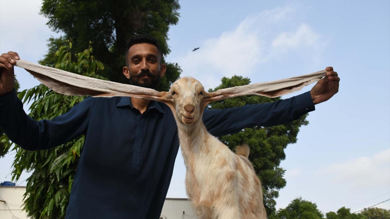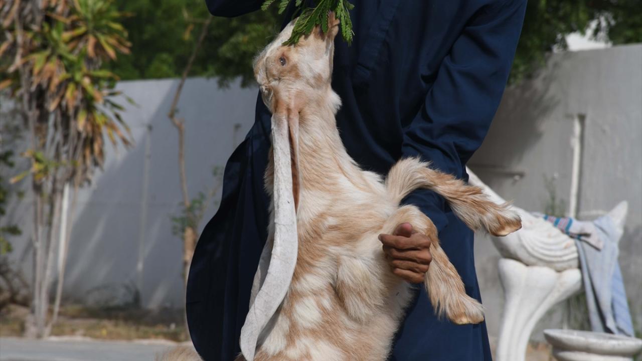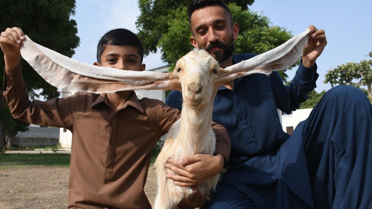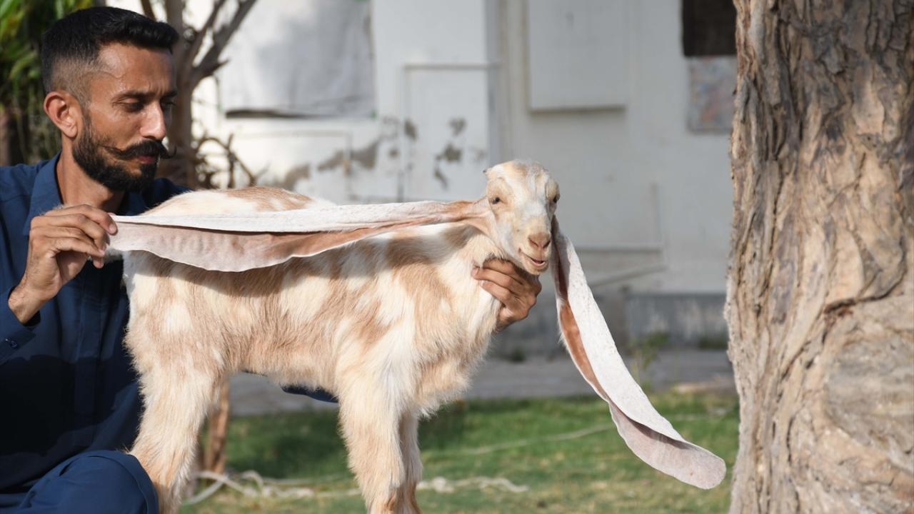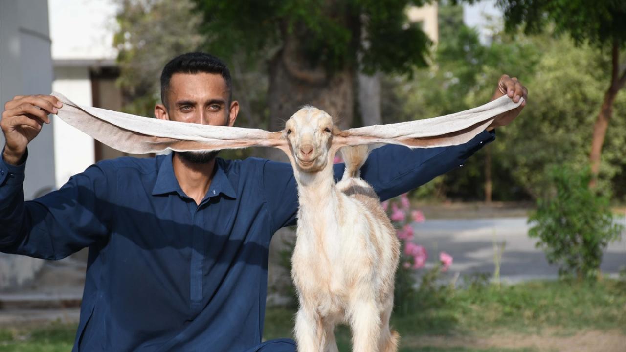 Pakistanlı keçi yetiştiricisi Mohammad Hasan Narejo’ya ait olan çiftlikte dünyaya gelen keçi yavrusu Simbi, henüz iki aylık olmasına rağmen tek kulak uzunluğu 55 santimetre.