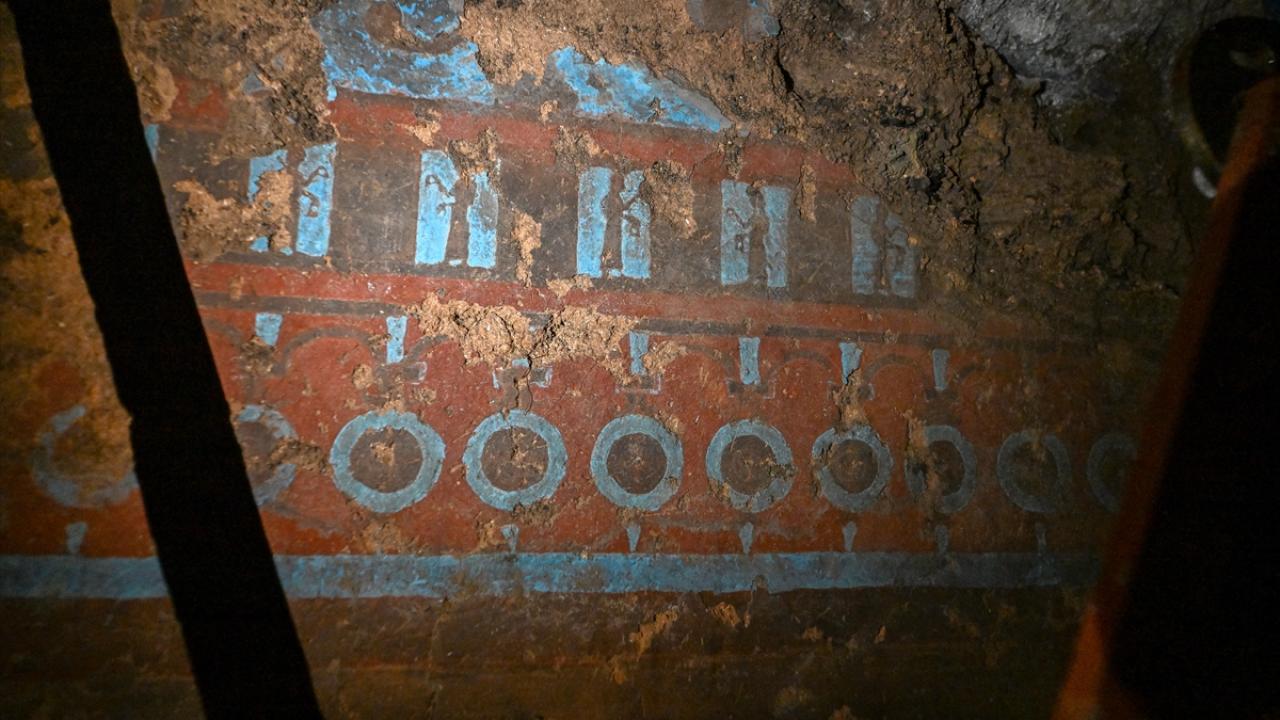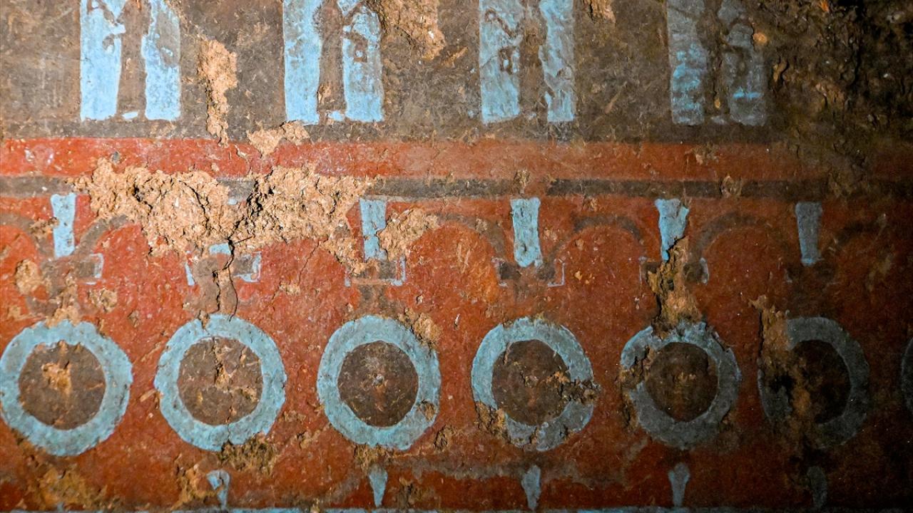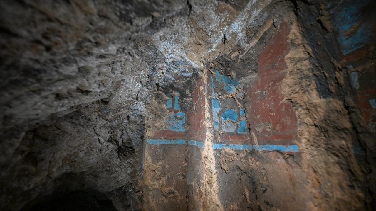 Kazı sırasında açılan küçük girişten girilen yerin 6-7 metre altında koridorlarla birbirine bağlanmış birçok odadan oluşan büyük anıtsal yapı grubunda yaklaşık 3 bin yıllık olduğu değerlendirilen duvar resimlerinin korunması için önlemler alındı.