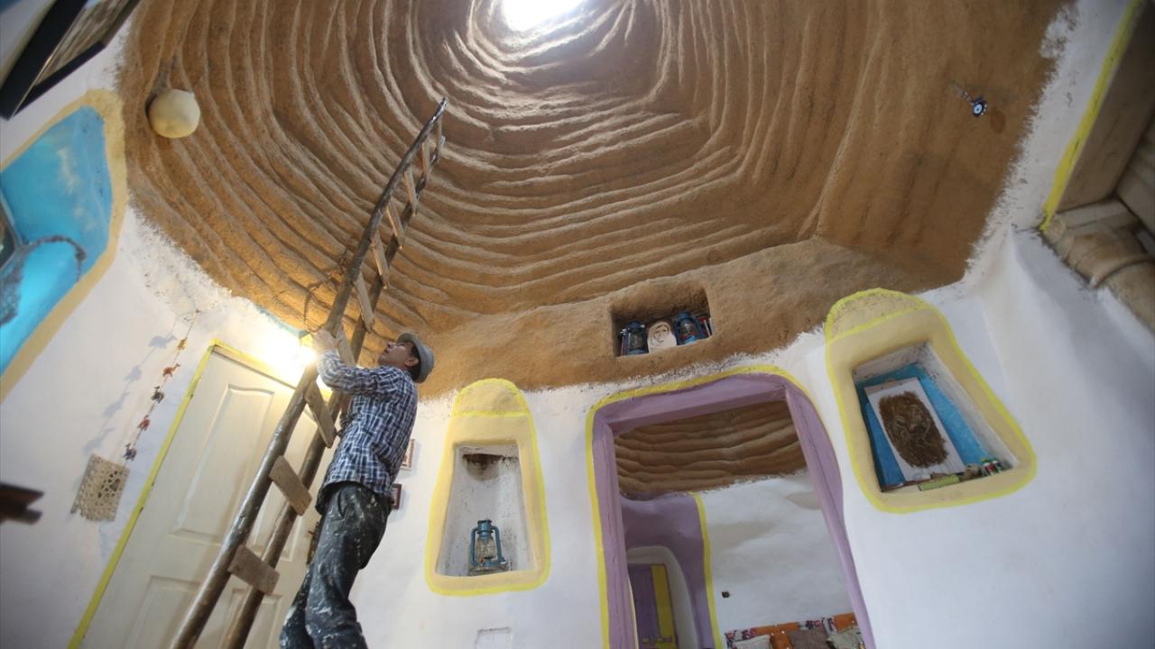 200 metrekare alana sahip kubbe şeklindeki evini bitirmek ve hayalindeki mimariyi hayata geçirmek için 3 yıl daha çalışan Nazzal, 2021`de tamamlanan evin yapımında beton malzemeler yerine çamur, arpa samanı, kül ve keçi kılı kullandı.