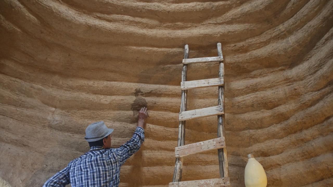 Evin yapımında çamur, arpa samanı, kül ve keçi kılı kullandı