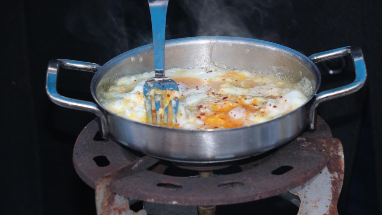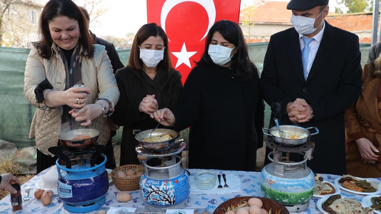 Daha sonra Vali Canalp ve eşi Ayten Canalp, Aksal ve AK Parti İl Başkanı Belgin İba, sahanda tereyağlı yumurta pişirdi.