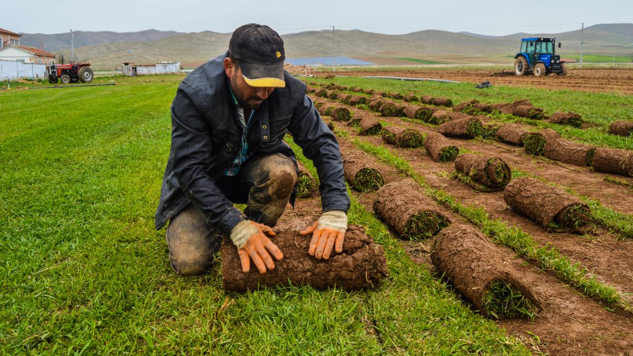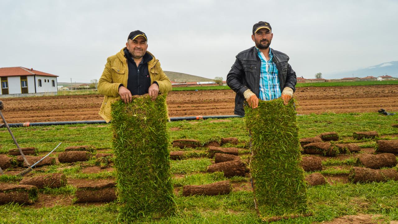 Afyonkarahisarlı Mısırlıoğlu ailesinin 200 dekarlık arazilerinde ürettiği rulo çimler, hem belediyelerin peyzaj çalışmaları için hem de bazı amatör spor kulüplerinin stat zeminlerinde kullanılıyor.