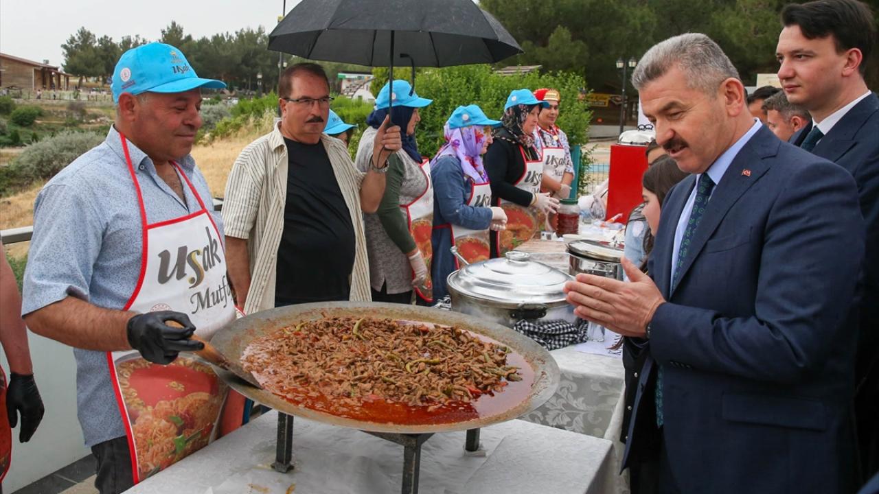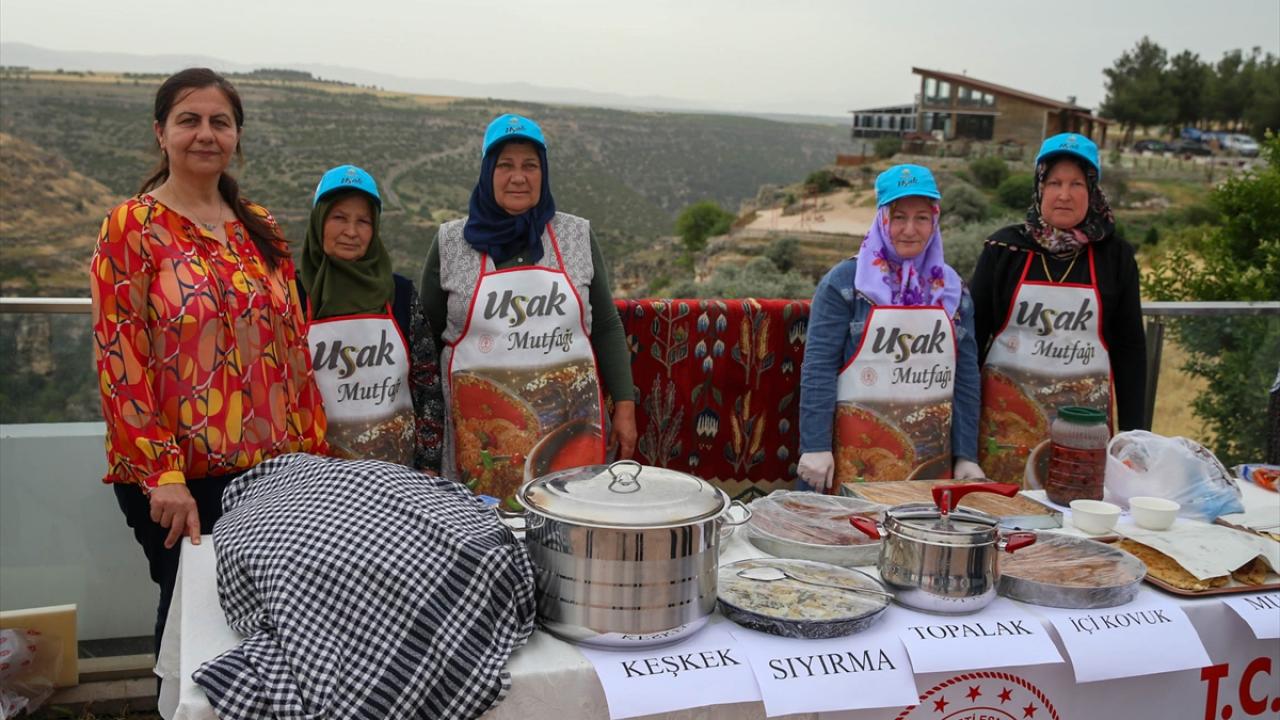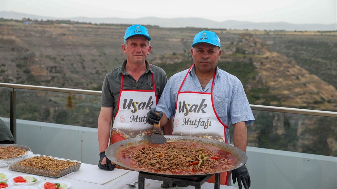Dünyanın en büyük kanyonları arasında yer alan Ulubey Kanyonu`ndaki yerden 123 metre yükseklikteki cam terasta gerçekleştirilen etkinlikte, kent mutfağında yer alan Karahallı ciğeri, döndürme, Uşak tarhanası, alacatene, demir tatlısı, topalak, keşkek, Uşak baklavası, ebem köfte, zini hamursuzu ve haşhaş ezmesi gibi lezzetler katılımcılara ikram edildi.