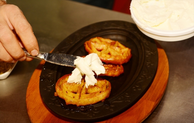 Yörük kültürünün egemen olduğu Uşak mutfağının birbirinden farklı lezzetleri ziyaretçilerin ilgisini çekiyor. Bu lezzetler arasında kaymak ve cevizle servis edilen demir tatlısı sofraların vazgeçilmezleri arasında yer alıyor.