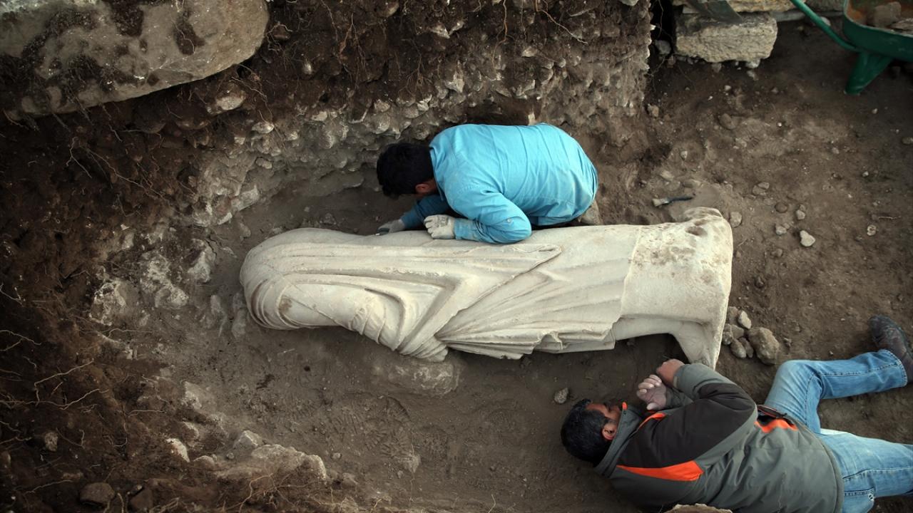 Uşak'ın Ulubey ilçesindeki Blaundos Antik Kenti'ndeki kazılarda Demeter Tapınağı'nın avlusundan Roma dönemine ait olduğu değerlendirilen yaklaşık 2000 yıllık iki heykel çıkarıldı.