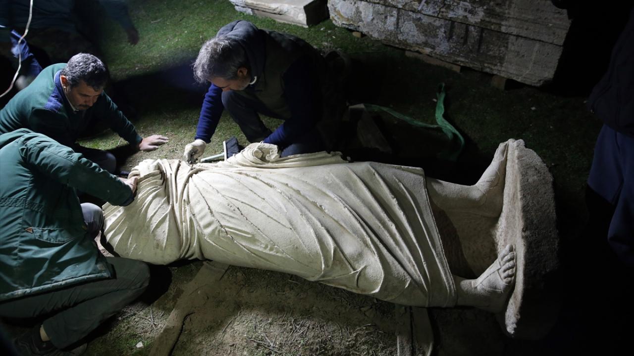 Birbirlerine çok yakın mesafedeki heykellerin orijinal yerinin neresi olduğunu bilemediklerini anlatan Can, "Heykeller tapınak alanına mı ait cadde kenarındaki onurlandırma heykellerinden mi, bunları henüz bilmiyoruz. Çevresinde birkaç yazıt ele geçti ama bu yazıtların heykelle bir ilişkisinin olup olmadığını da henüz araştırıyoruz. Her ikisi de mermer erkek heykelleri. Bunlardan biri giyinik, başı dışında tam boy olarak ele geçti. Bu bakımdan şanslıyız. Baş kısmı bilerek oyulmuş. Belli ki daha sonra kendi portresini yaptıran birisi o kısma o portreyi yerleştiriyordu. Başı hariç korunan boyu yaklaşık 185 santimetre. Diğer heykel ise başı, sağ kolu ve iki bacağı eksik halde ele geçti. Sol kolundan dolanarak sol omuzunda toplanan kısa bir pelerine sahip. Bunların kim olduklarını, bir tanrı, imparator ya da bir devlet adamı olup olmadıklarını henüz netleştirmiş değiliz. Milattan önce 4. yüzyılın ikinci yarısından itibaren heykel sanatında bir zirve yaşandığını söyleyebiliriz." dedi.