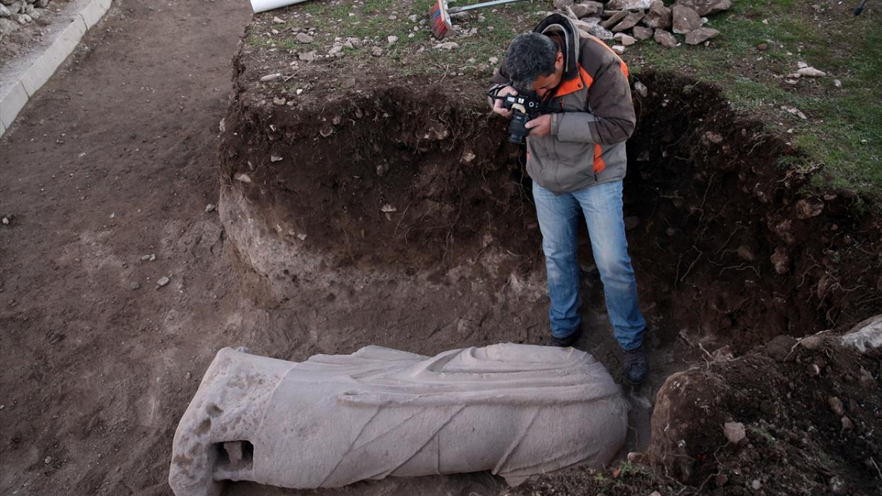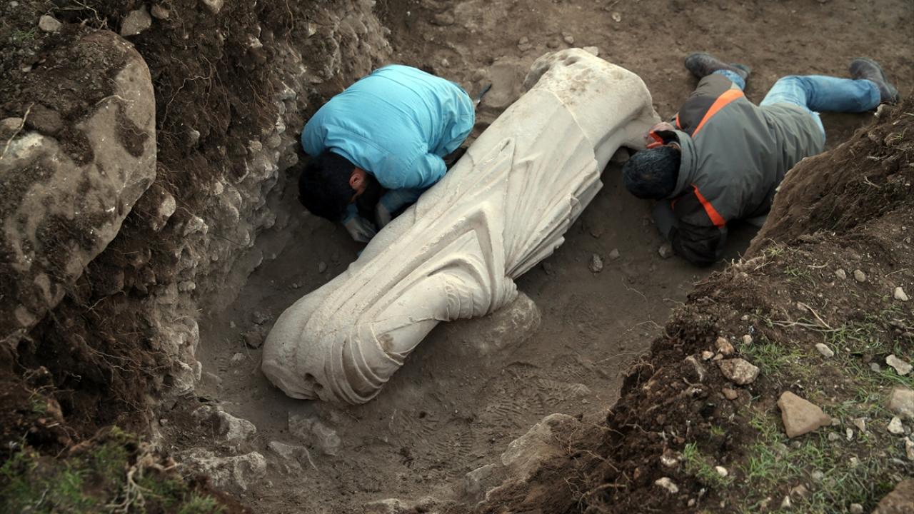 Kazısı yapılarak çıkarılan heykellerden birinin 185 santimetre boyunda olduğu ve başının olmadığı, diğerinin de başı, sağ kolu ve iki bacağının eksik olduğu belirlendi.