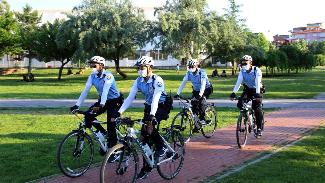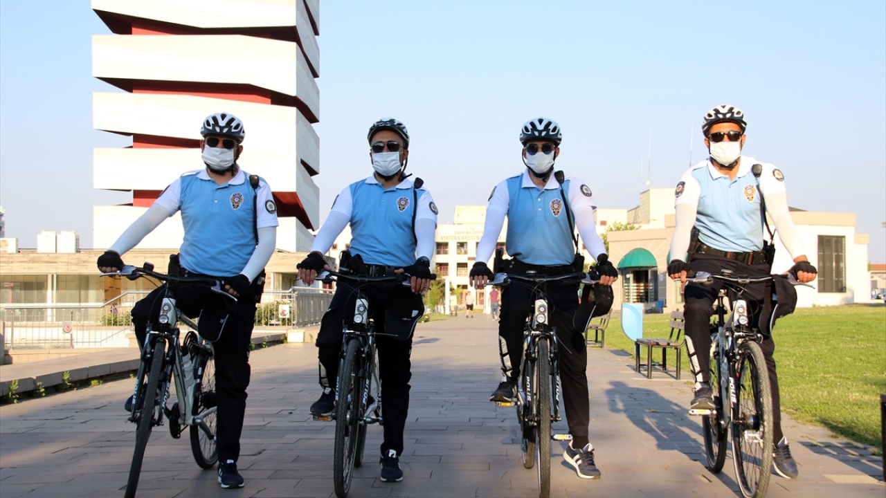 Özel kıyafetli ve bisikletli Martı Timi, vatandaşların yoğun olduğu İsmet Paşa Caddesi ve Atapark`ta görev yapıyor.