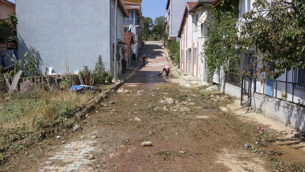 Mahalle sakinlerinin ihbarı üzerine bölgeye Uşak Belediyesi ekipleri sevk edildi. Dolu birikintileri, iş makineleriyle kamyonlara yüklenerek temizlendi.