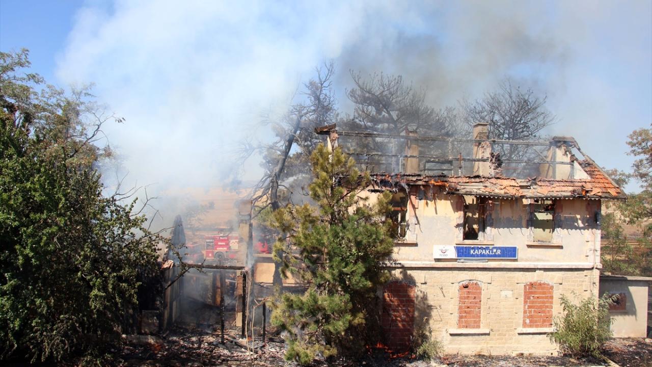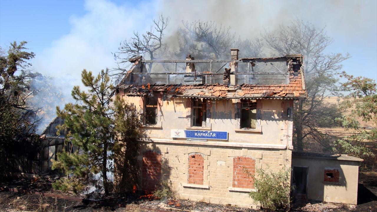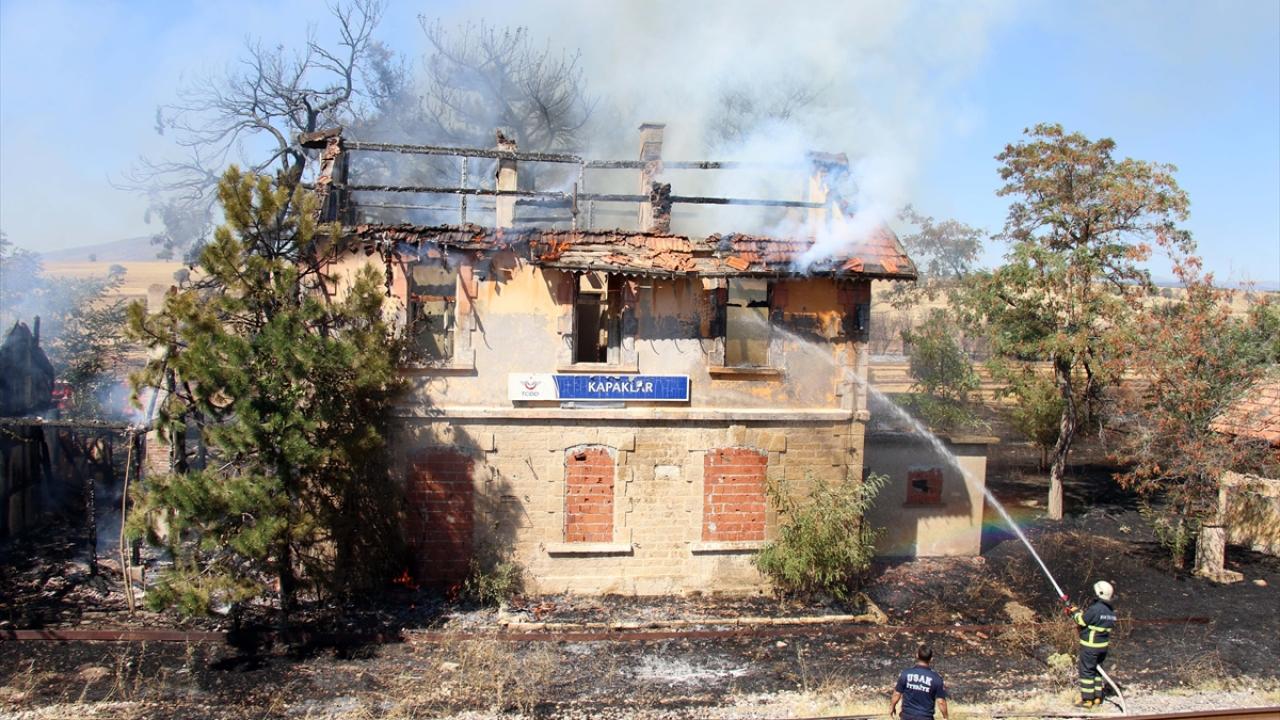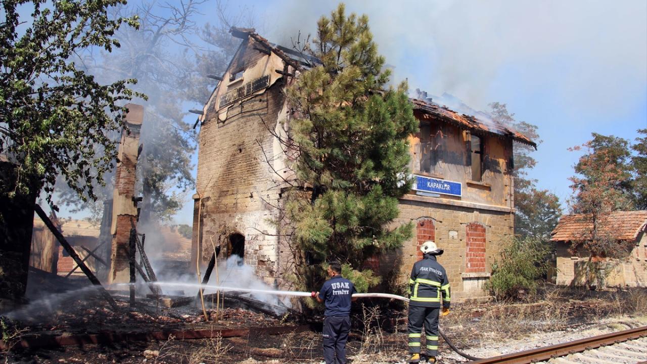 Uşak'ın Kabaklar köyünde otluk alanda çıkan ve 125 yıllık tarihi istasyon binasına sıçrayan yangın söndürüldü.