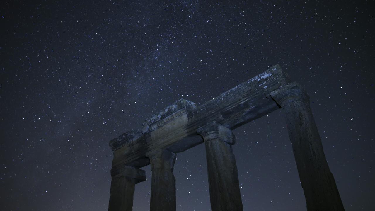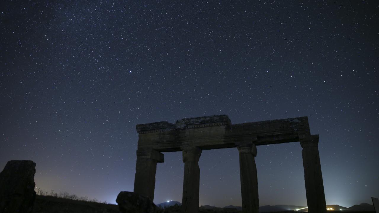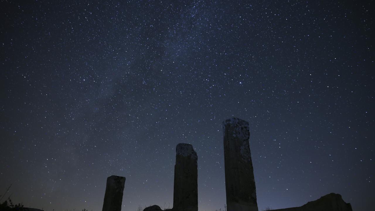 Büyük İskender'in Anadolu seferiyle Makedonya'dan gelenlerin yerleştiği, daha sonra Bergama Krallığı ve Roma İmparatorluğu'na bağlanan; derin vadilerle çevrili bir yarımada üzerinde kurulu Uşak'ın Ulubey ilçesindeki Blaundos Antik Kenti'ndeki yapılar ve yıldızlar, uzun pozlama tekniğiyle görüntülendi.