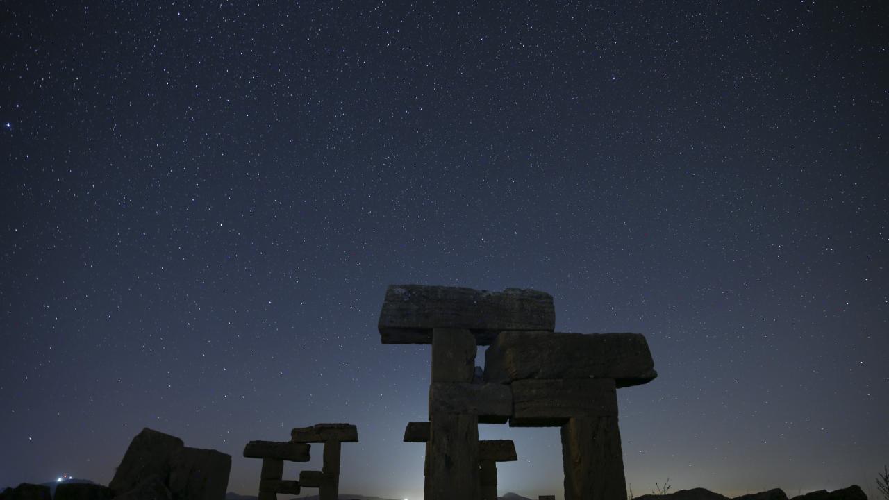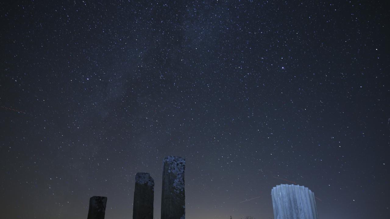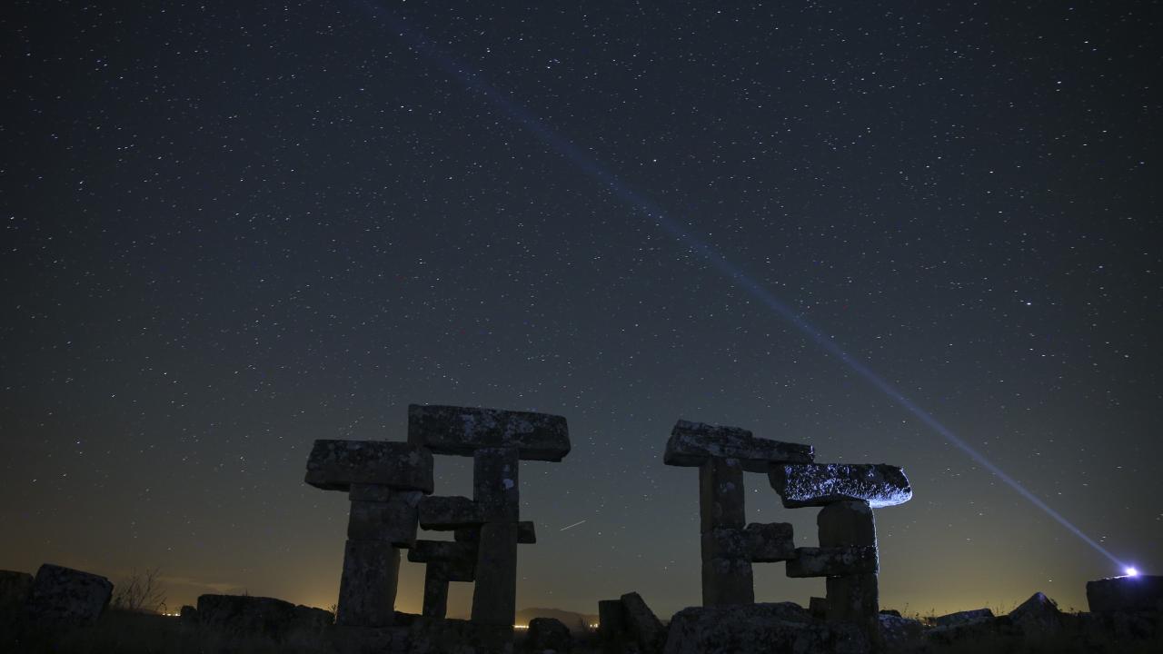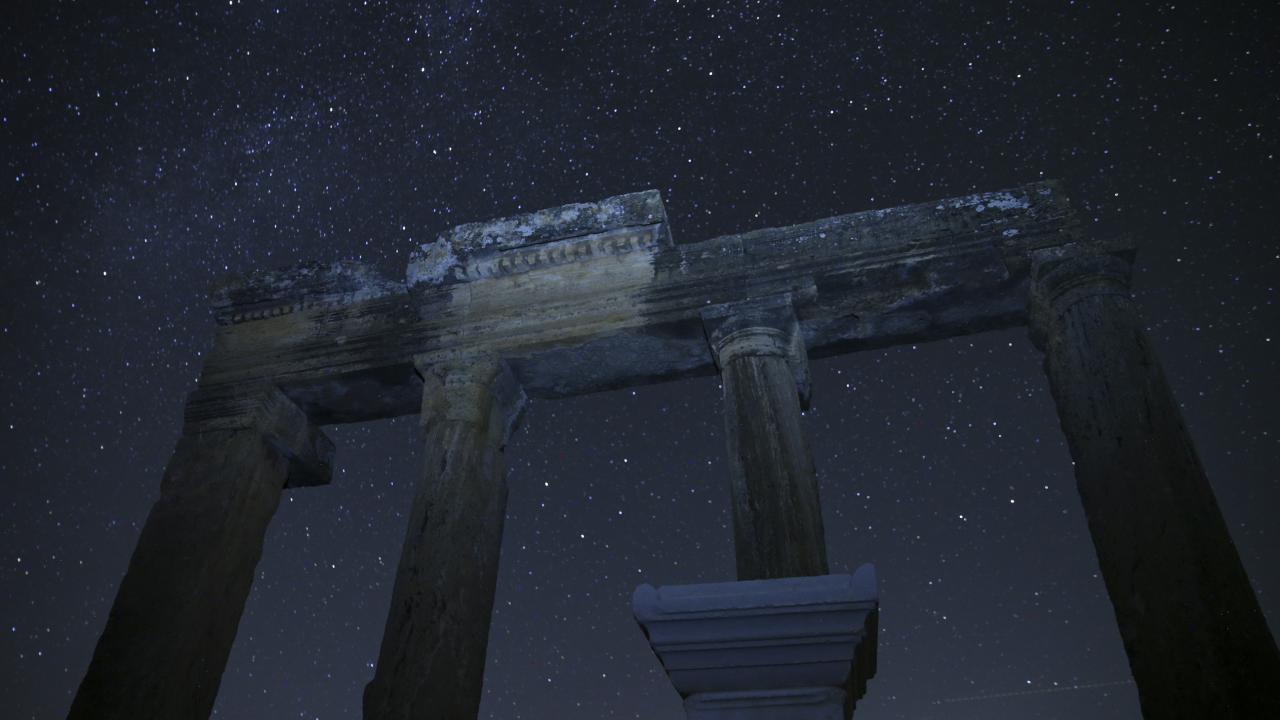 Büyük İskender'in Anadolu seferiyle Makedonya'dan gelenlerin yerleştiği, daha sonra Bergama Krallığı ve Roma İmparatorluğu'na bağlanan; derin vadilerle çevrili bir yarımada üzerinde kurulu Uşak'ın Ulubey ilçesindeki Blaundos Antik Kenti'ndeki yapılar ve yıldızlar, uzun pozlama tekniğiyle görüntülendi.