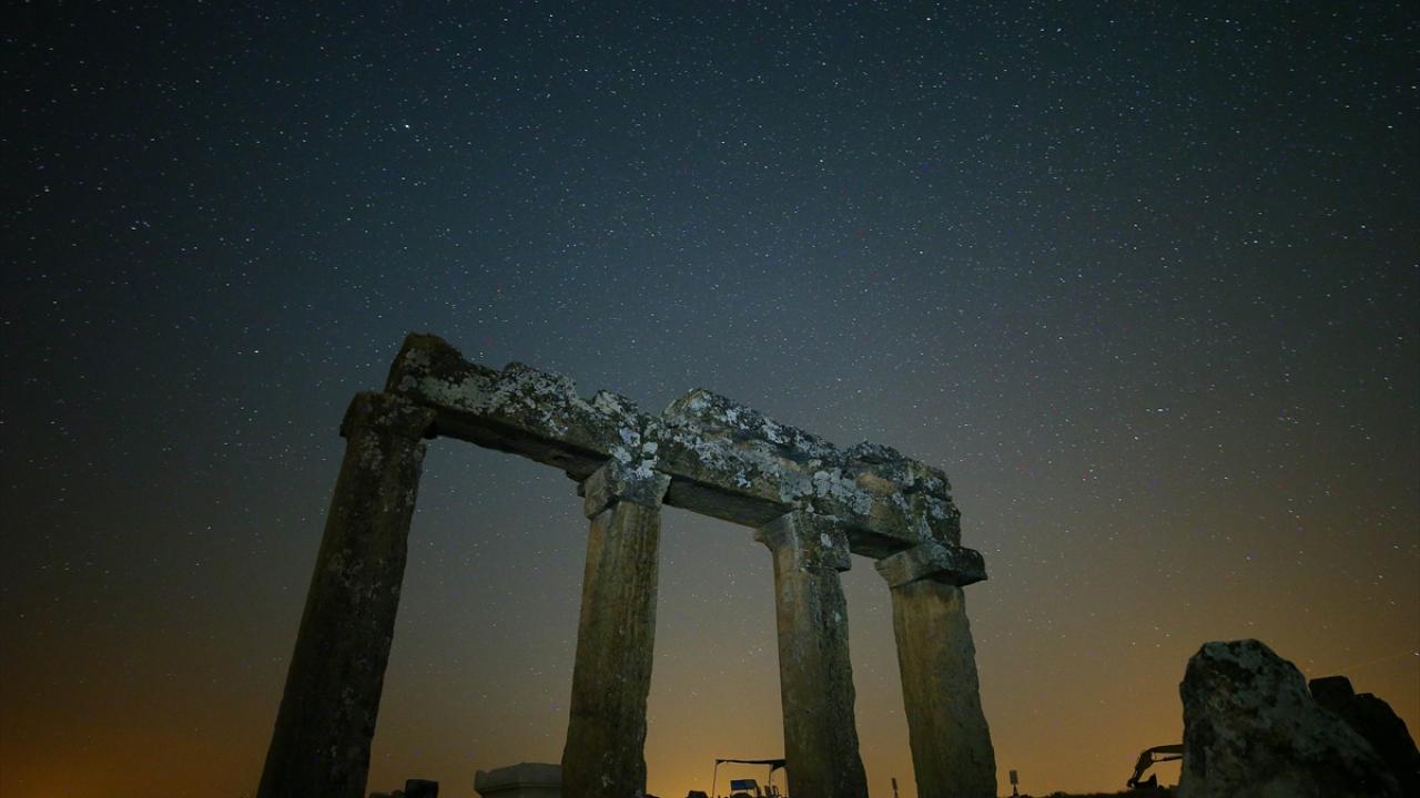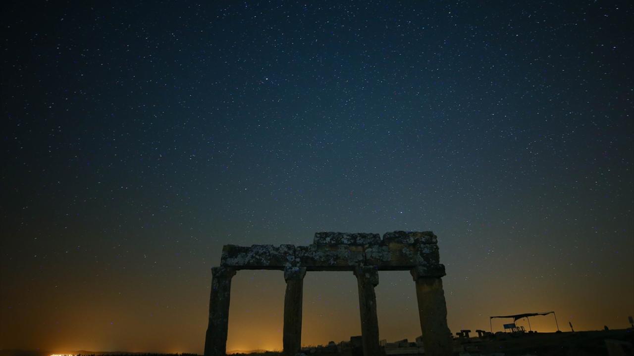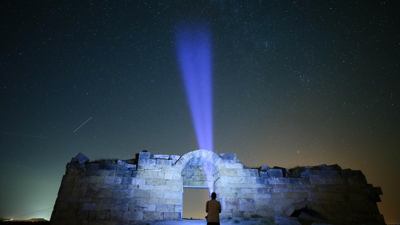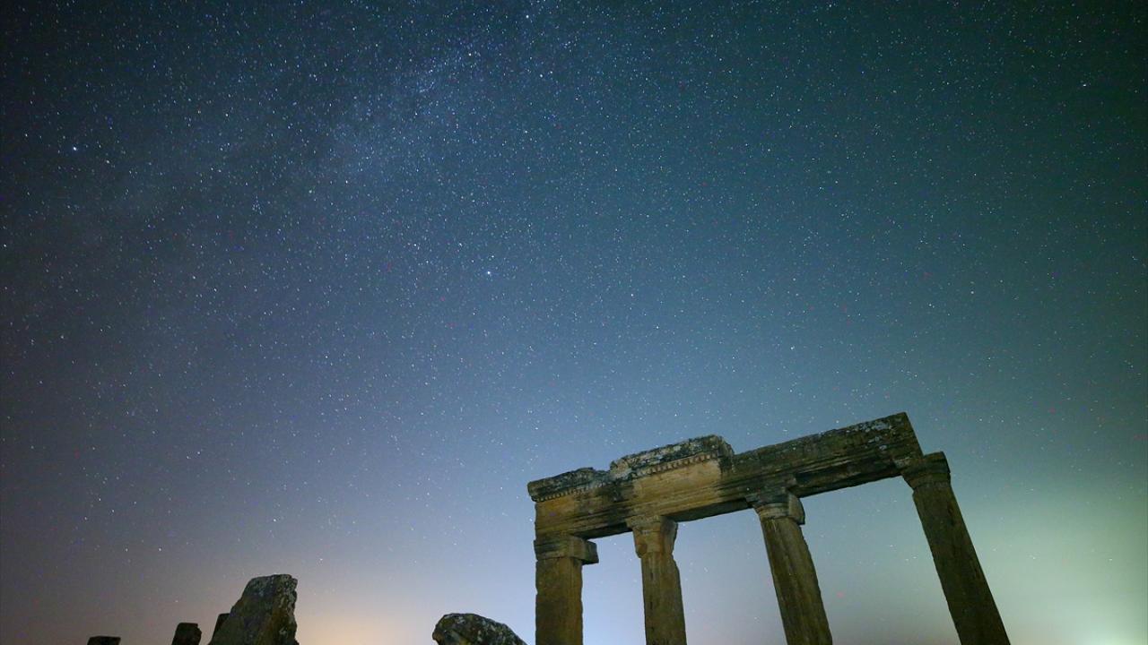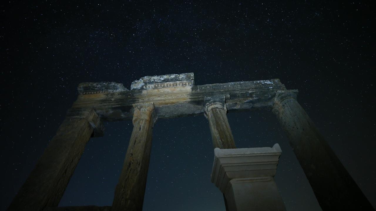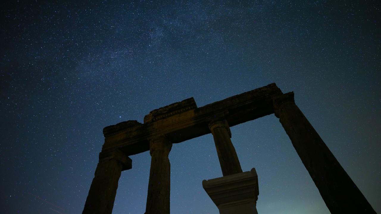 Büyük İskender'in Anadolu seferiyle Makedonya'dan gelenlerin yerleştiği, daha sonra Bergama Krallığı ve Roma İmparatorluğu'na bağlanan; derin vadilerle çevrili bir yarımada üzerinde kurulu Uşak'ın Ulubey ilçesindeki Blaundos Antik Kenti'ndeki yapılar ve yıldızlar, uzun pozlama tekniğiyle görüntülendi.