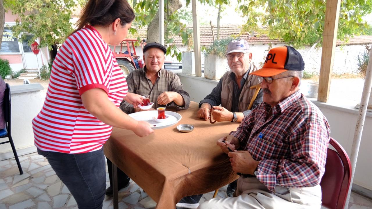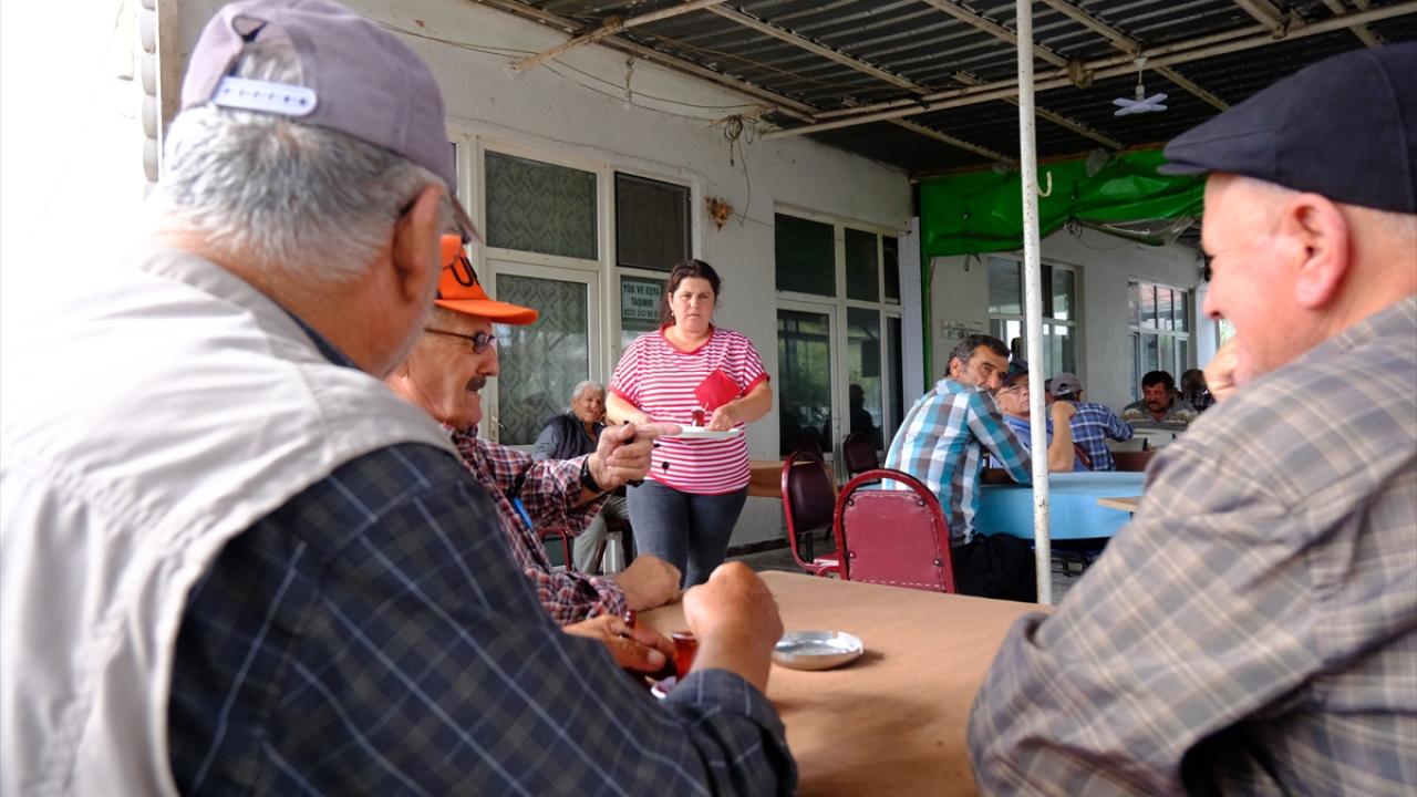 Gün aydınlanmadan köy kahvehanesinde temizlik yapan ve çayı demleyen Onbey, havanın aydınlanmaya başlamasıyla buradaki mesaisini geçici olarak eşine ve kızına devrediyor.