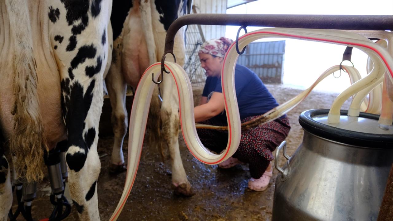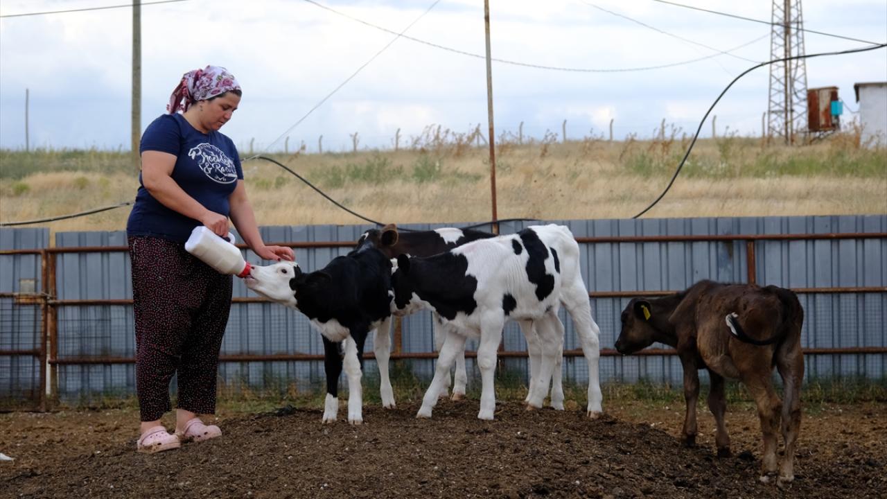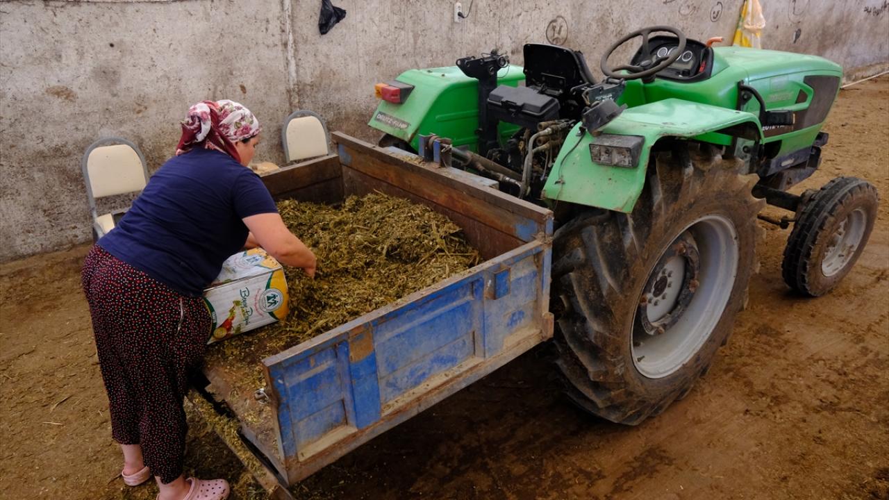 Çiğdem Onbey, çiftlikteki hayvanlarına bakması için köyden bir kadını da istihdam ediyor.
