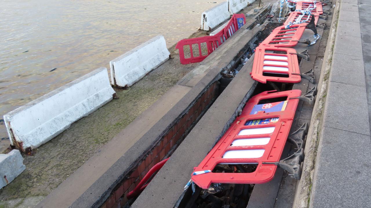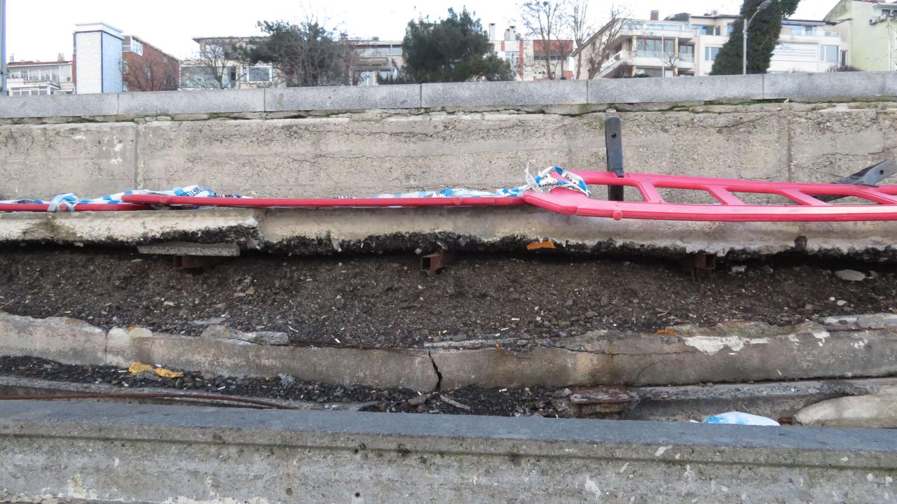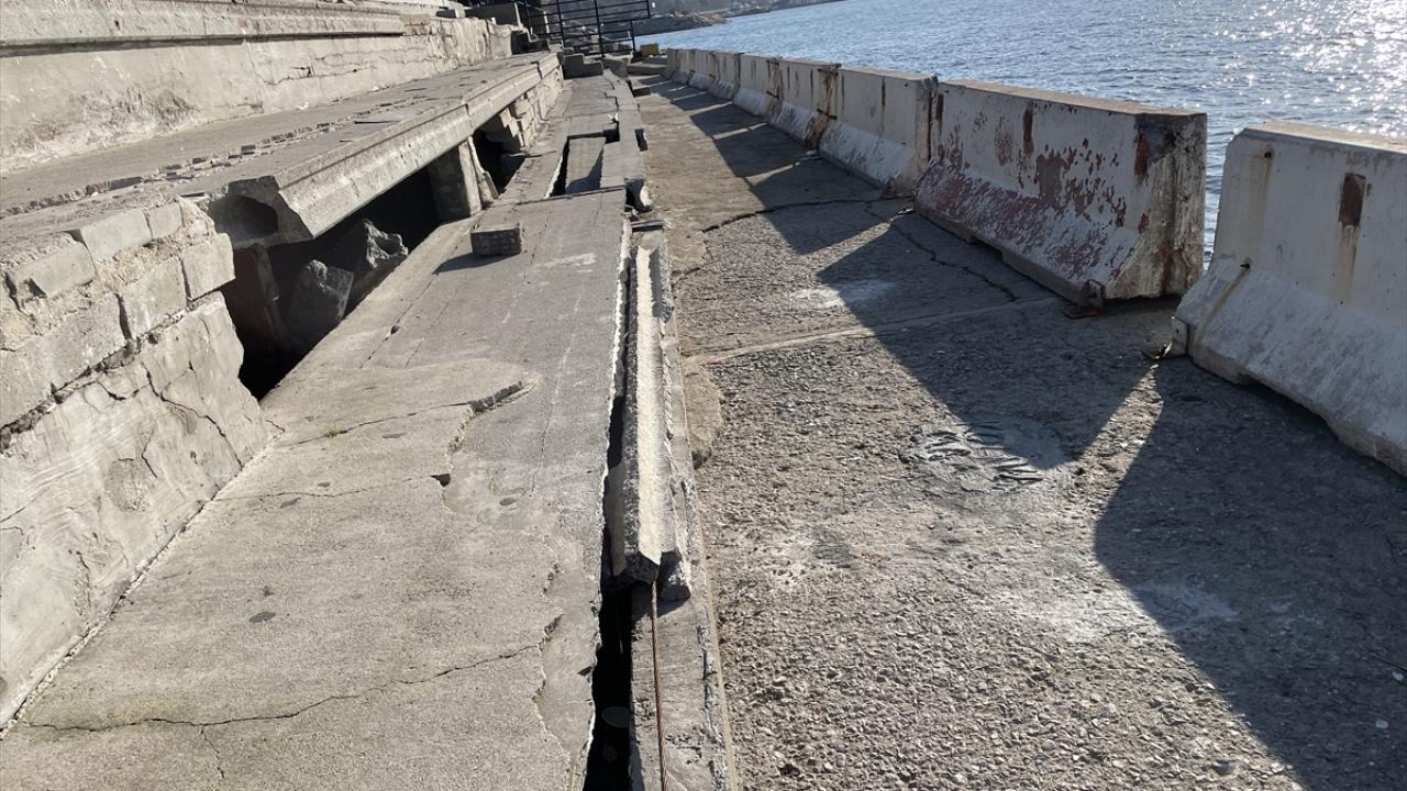 Yıllar önce doldurulmuş olan alanda derin çatlaklar, yıkıntılar ve çöken beton parçaları görülüyor.