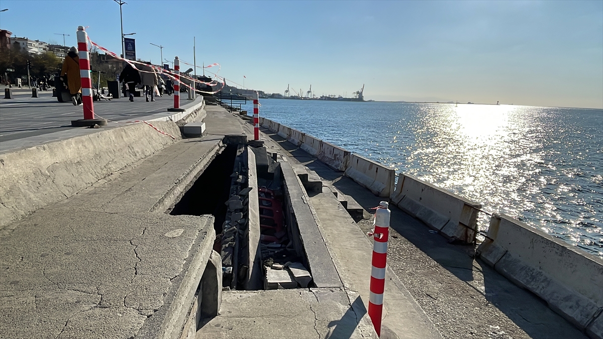 Arkadaşlarıyla birlikte sahile gelen Emre Yıldız, "Eskiden burada oturup çay içiyorduk. Çökme olmuş galiba. Önlem alınması gerekiyor" diye konuştu.