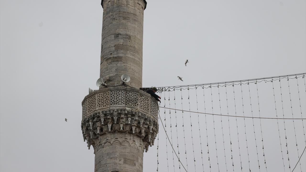 Ekiplerce caminin şerefesine çıkarılarak iki minare arasına asılan mahyada, "Aile toplumunun temelidir" yazısı yer aldı.