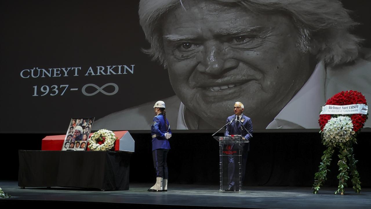 Törene katılan Kültür ve Turizm Bakanı Mehmet Nuri Ersoy, sanatçının ailesine sabır dileyerek, "Yüreğimize bir burukluk, bir ağırlık çöktü. Zira Cüneyt Arkın ismi bir sanatçı adı olmanın ötesinde, bir duruş ve kararlılık ifadesiydi. Dram, romantik, komedi, sinemada hangi türde olursa olsun, canlandırdığı karakterin hakkını sonuna kadar verdi. Ama hepsinden öte, Türk tarihine sinema perdesi üzerinden eşsiz bir kapı açtı. Popüler kültürün asimile eden, özünden koparan, akıl çelen etkilerine, sanat ve direnişin akla gelen ilk ismi Cüneyt Arkın oldu ve bütün bunları yokluk ve imkansızlıklara rağmen başardı. Bildiği, inandığı yolda devam etti." dedi.