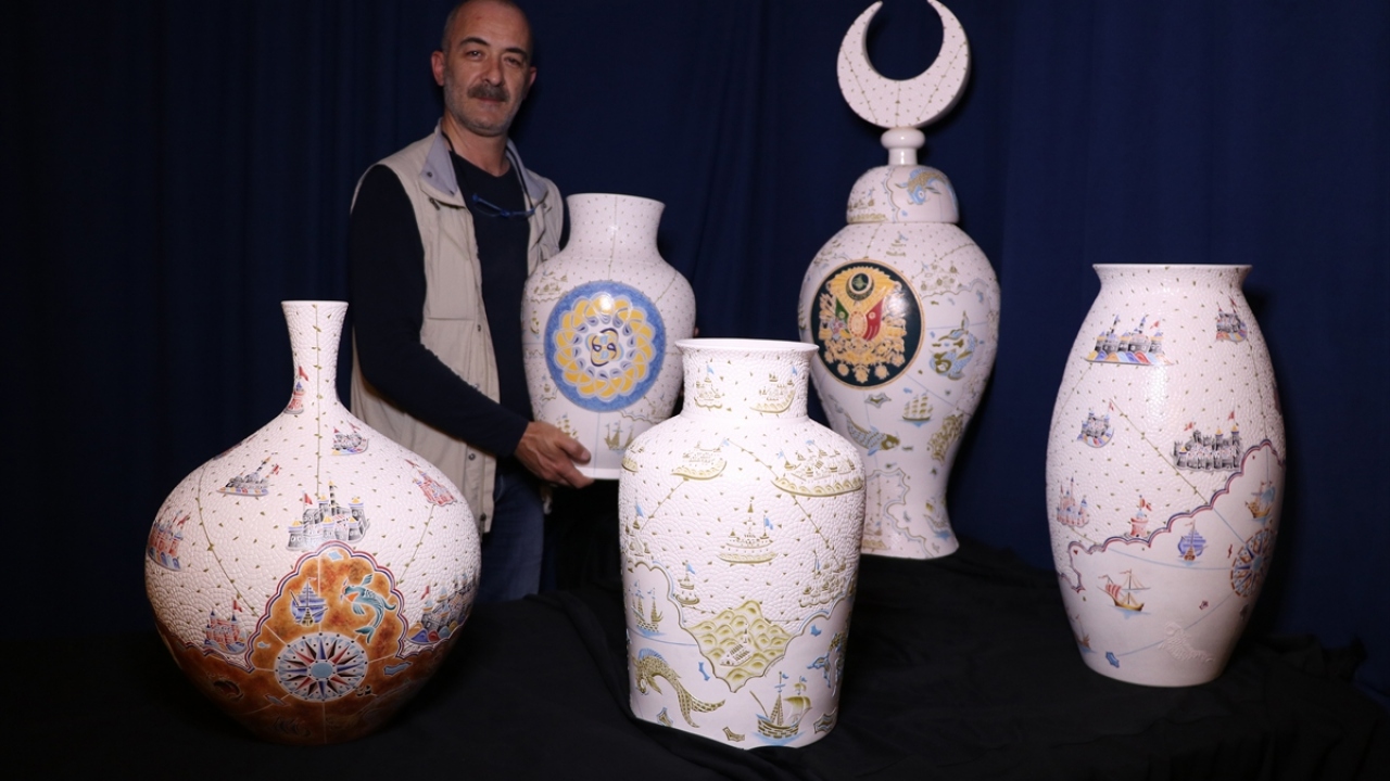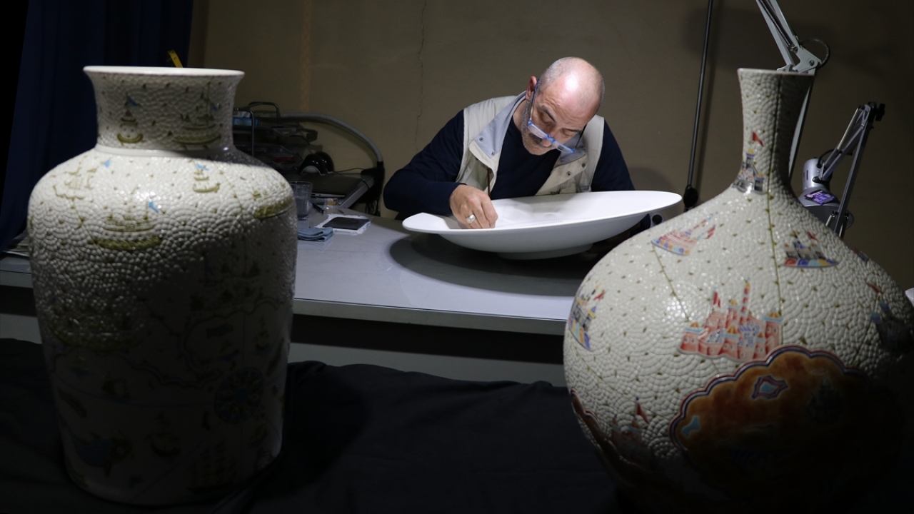 Çetinkaya, yaptığı açıklamada, önceki yıllarda Osmanlı döneminin ünlü denizcilerinden Piri Reis`in dünya haritası, minyatür sanatçısı Matrakçı Nasuh`un eserleri, Osmanlı motifleriyle Orhun Yazıtları ve Sultan 2. Abdülhamid döneminde yapılan ve İstanbul`un iki yakasını bir araya getiren köprü, tüp geçit, teleferiğin yanı sıra Miniatürk, Gezi Parkı gibi şehir imar projelerini çinilere işlediğini hatırlattı.