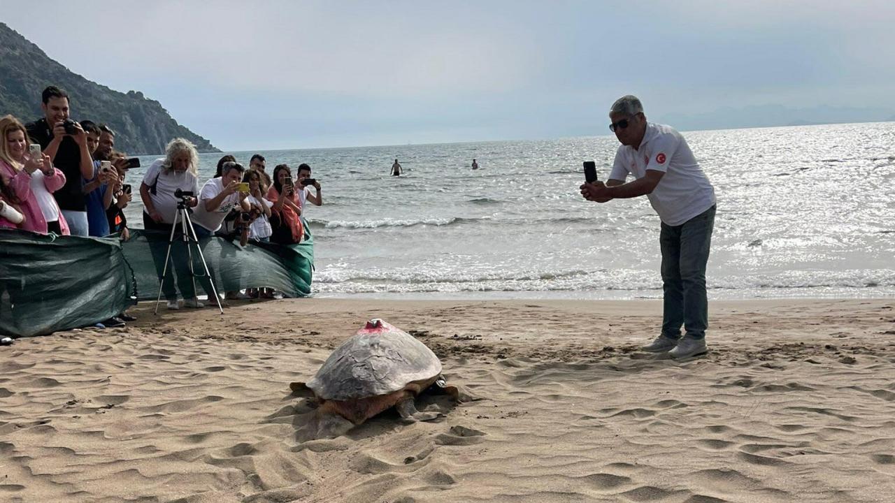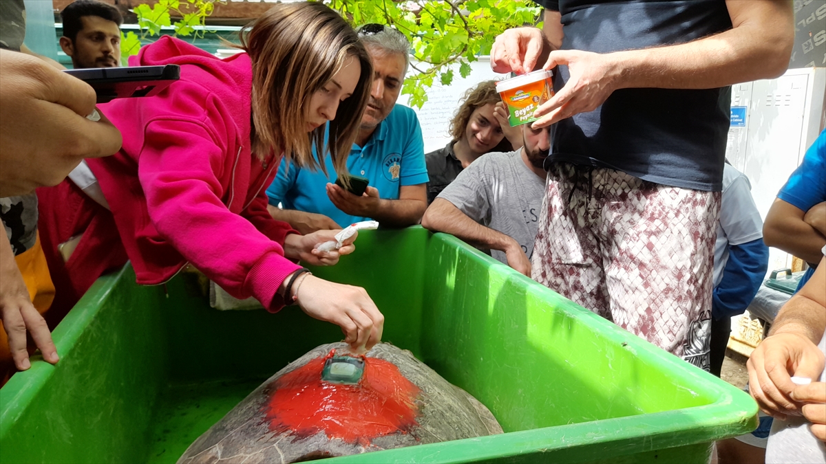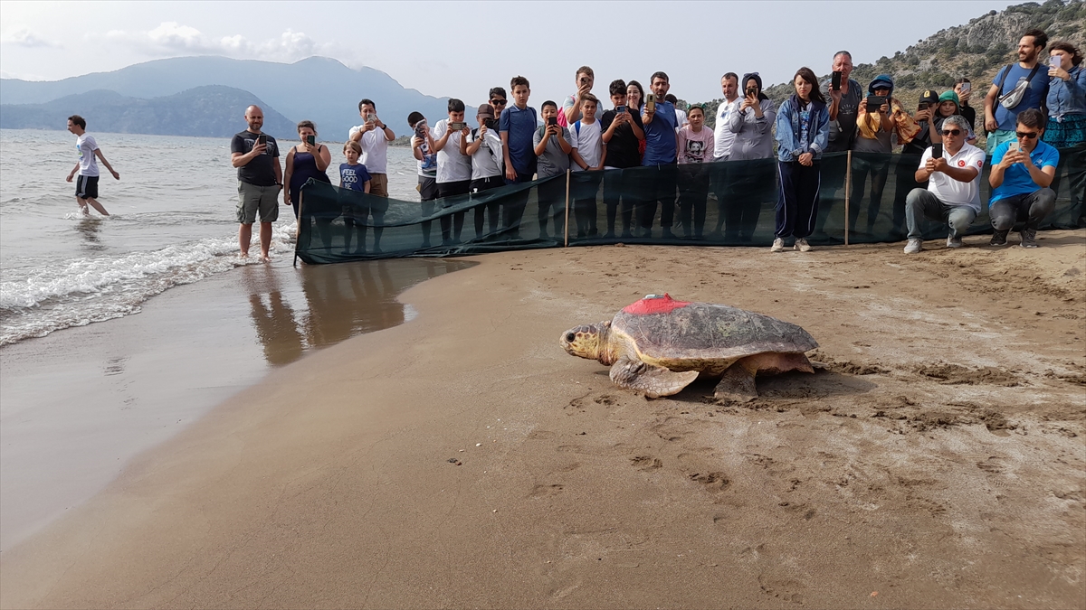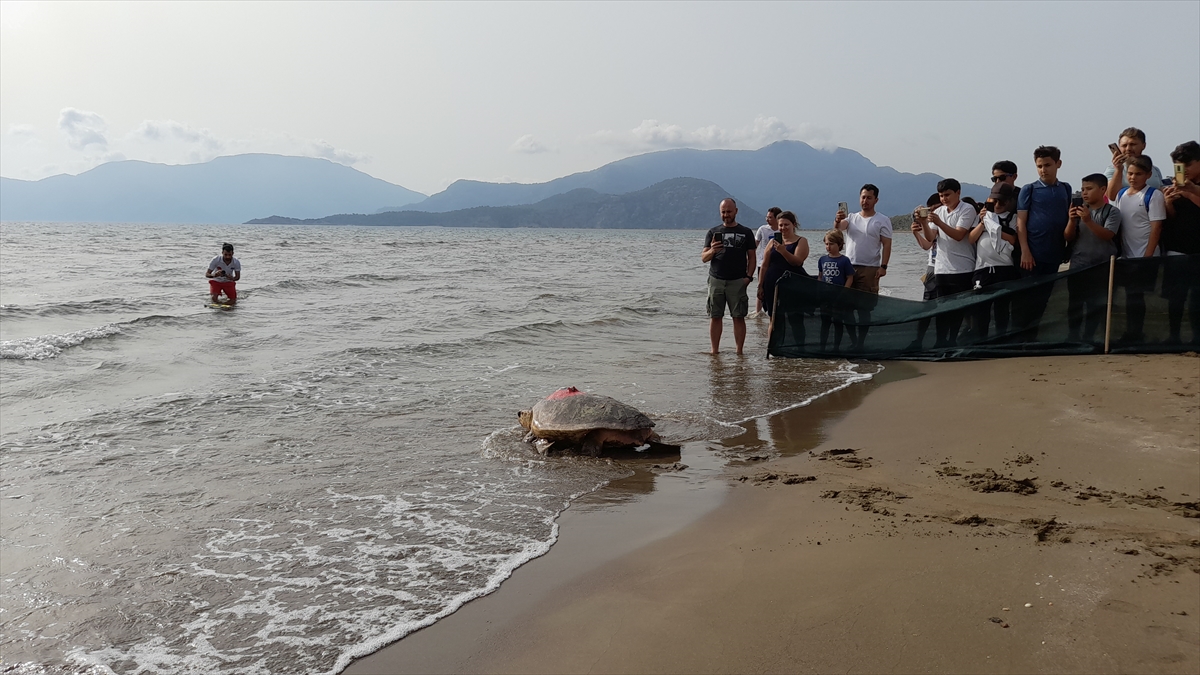 Muğla'da, Deniz Kaplumbağaları Araştırma Kurtarma ve Rehabilitasyon Merkezi'nde (DEKAMER) uydu takip cihazı takılan "Türkiye 100" isimli caretta caretta, denize salındı.