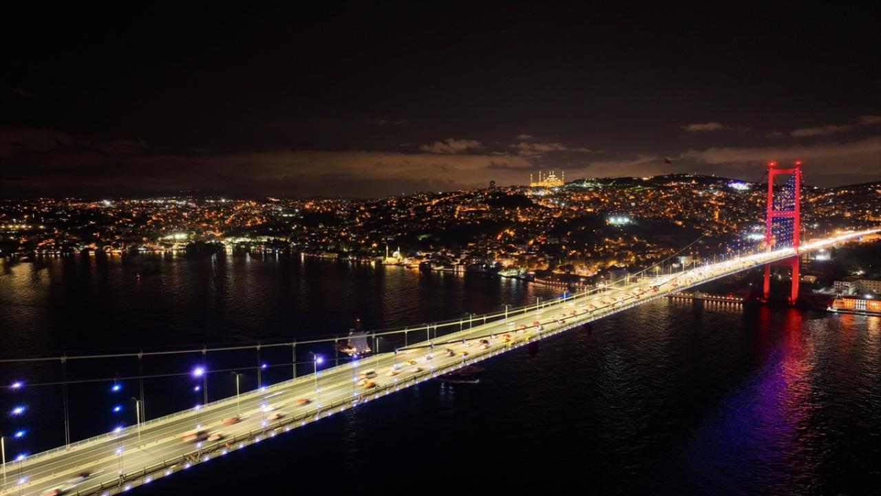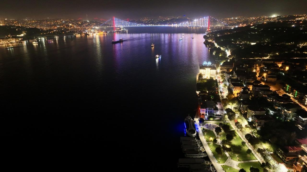Gece ışıklandırıldığında Galata Kulesi ve Çamlıca Camisi gibi simge yapıların yanı sıra hisarlarıyla ön plana çıkan İstanbul`da gece ve gündüz, hayat durmadan devam ediyor.
