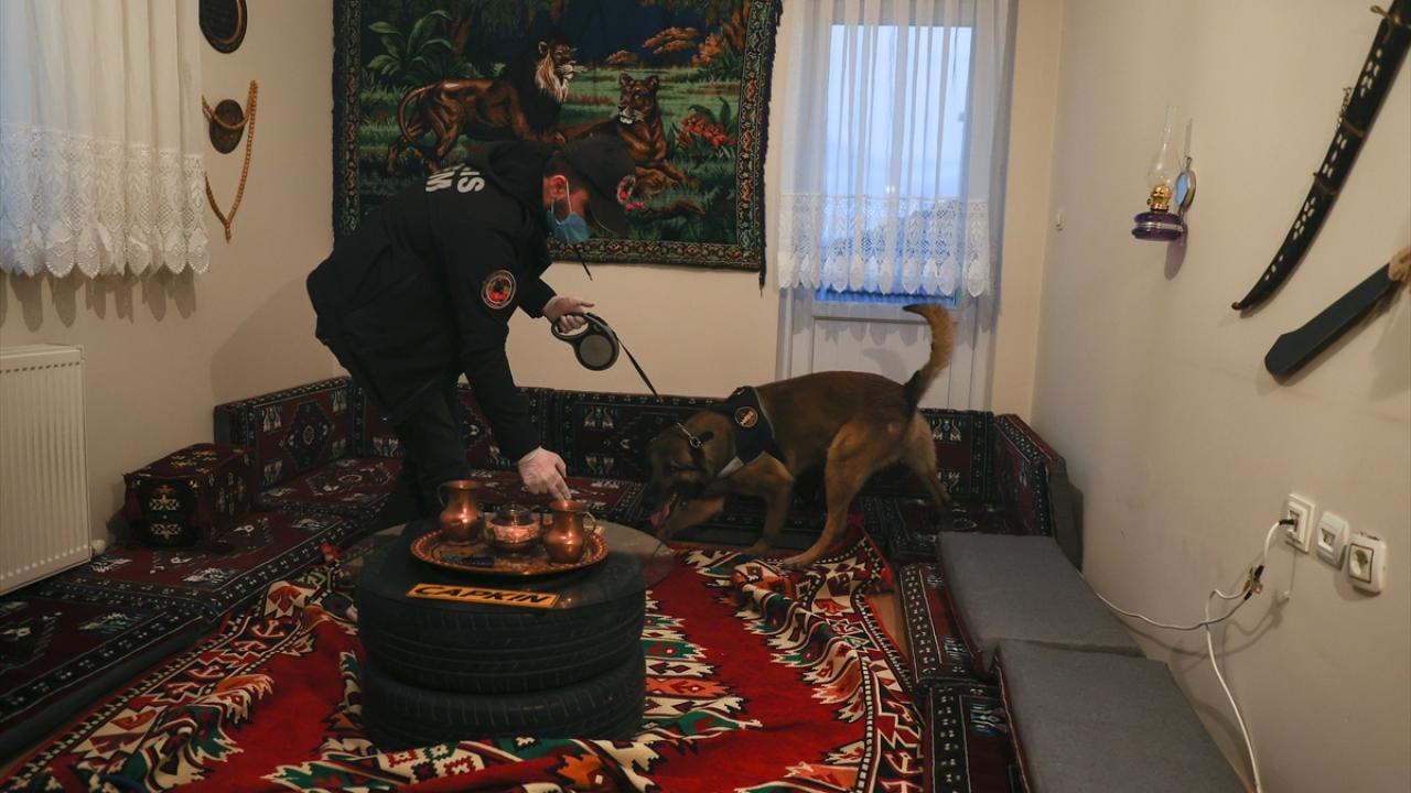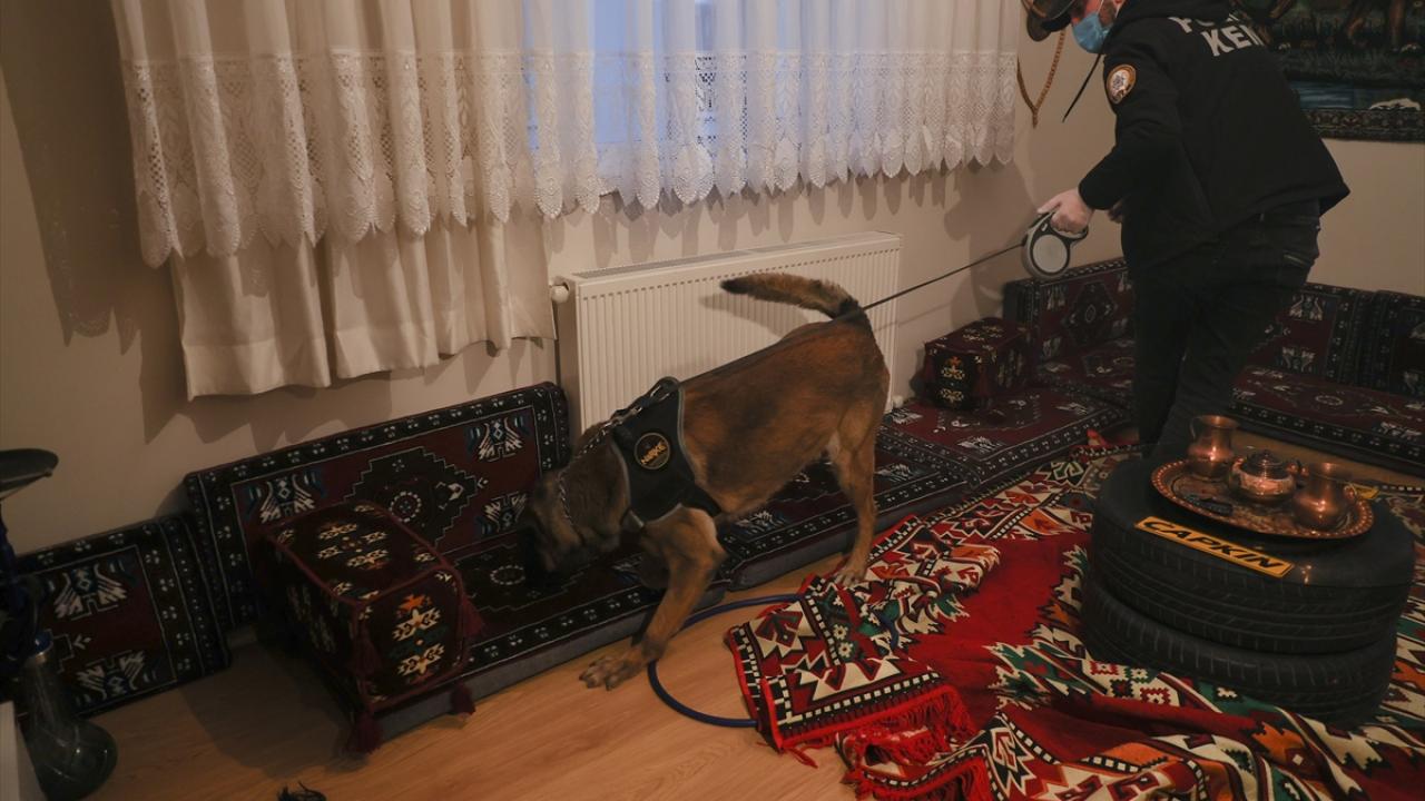 Y.B ve beraber yaşadığı kız arkadaşı B.A`yı gözaltına alan ekipler evde narkotik köpeği "Eros" ile arama yaptı.