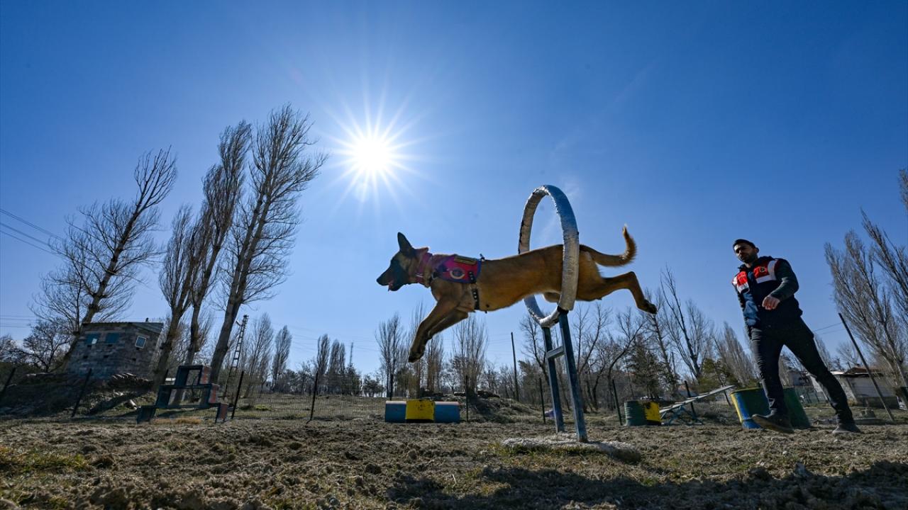 İl Jandarma Komutanlığı ekiplerince uyuşturucuyla mücadele çalışmalarında kullanılan "Obruk", "Deri", "Deney" ve "Bone", her gün kendileri için özel oluşturulan alanda eğitimden geçiriliyor.
