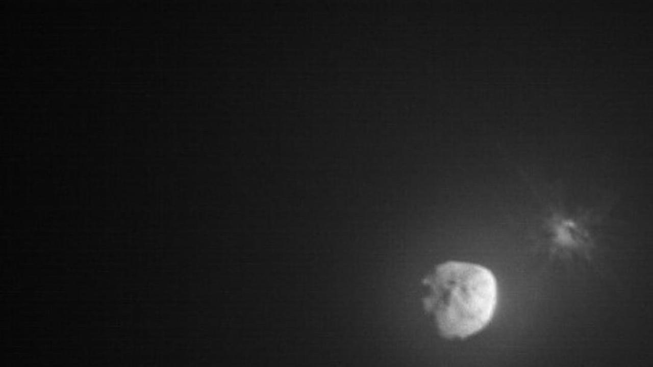 Görüntülerde, büyük parlak nesne asteroit Didymos`tur.