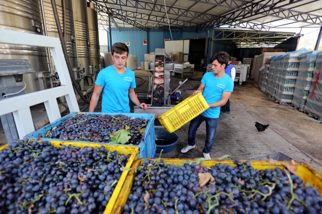 Tekirdağ'ın Şarköy ilçesindeki bağlarda yetişen üzümler, girişimci çiftçilerin emekleriyle fabrikada şişelenerek, dört mevsim tüketiciye sunuluyor. Geçimini üzüm yetiştiriciliğiyle sağlayan Şarköy'ün Mursallı Mahallesi'ndeki bağcılar, yıl boyunca yetiştirdikleri üzümlerini toplamak için sabahın ilk saatlerinde gittikleri bağlarda yoğun mesai harcıyor.