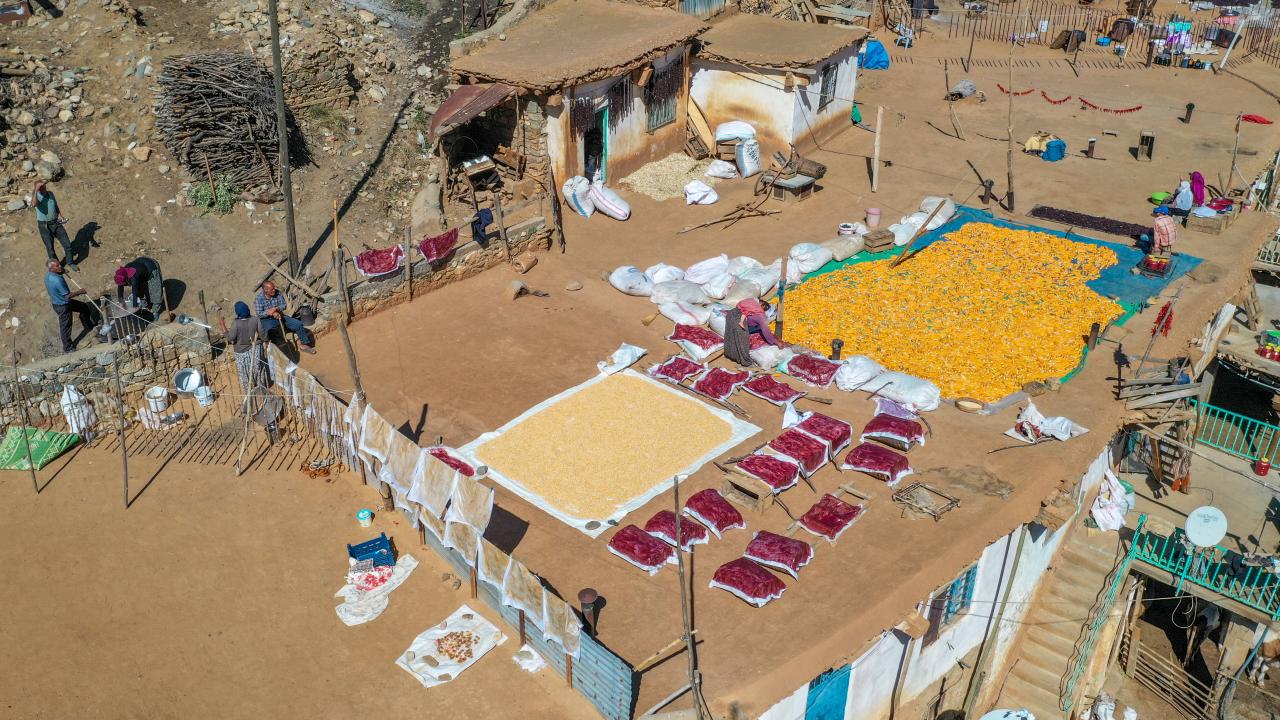 İlçeye 40 kilometre uzaklıktaki yaklaşık 100 haneli köyde vatandaşlar, kışa hazırlık için hummalı bir çalışma içerisinde.