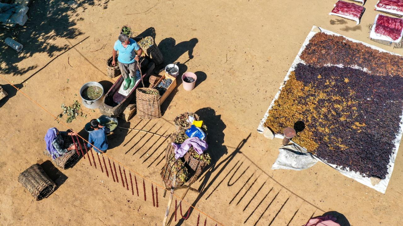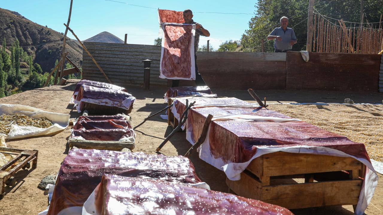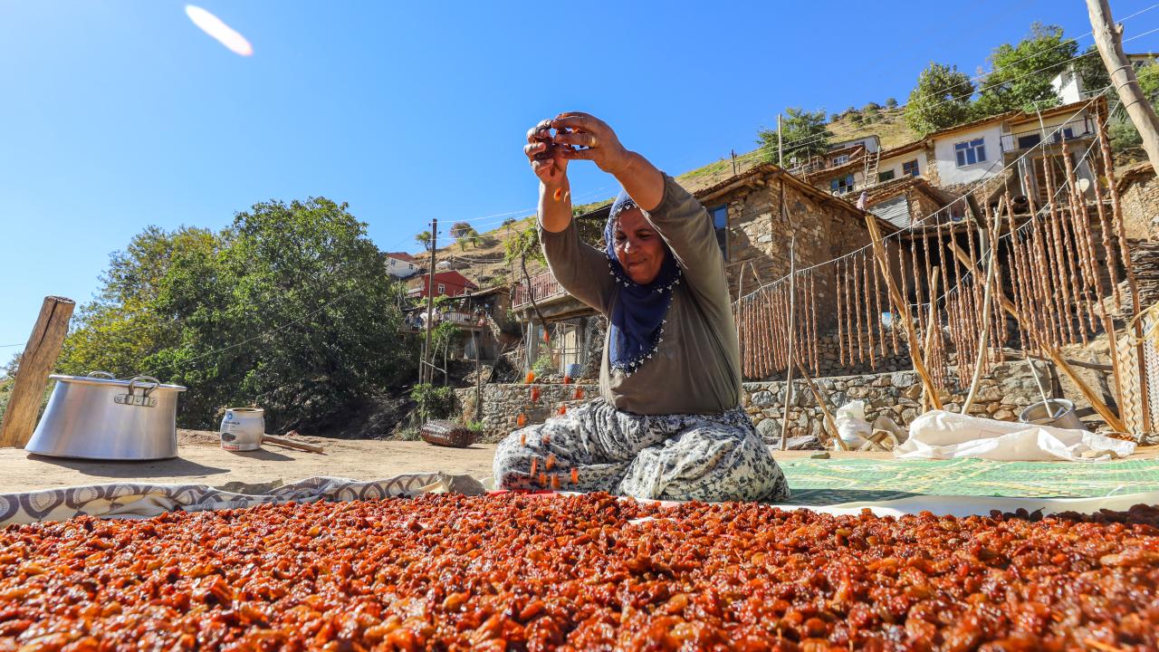 Köylüler, yetiştirdikleri üzümlerden kurutmalık, cevizli sucuk ve pestil gibi kışlık ürünleri hazırlıyor.