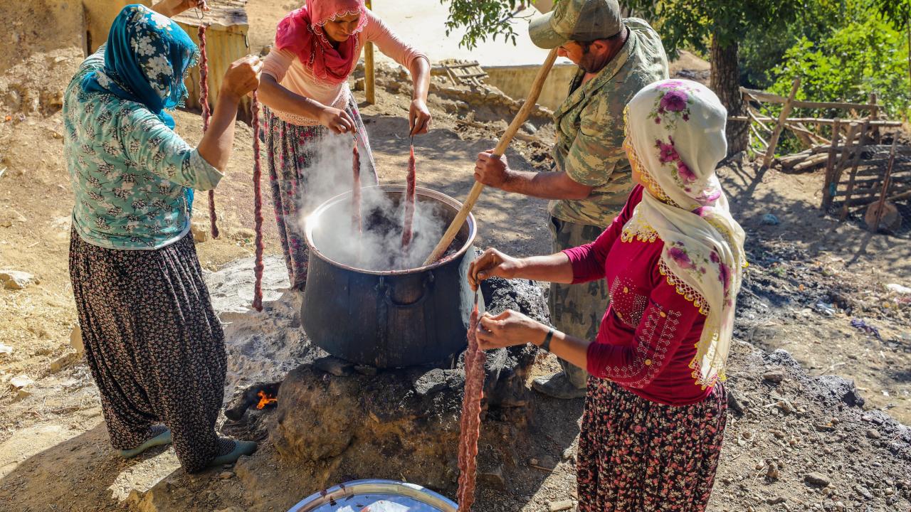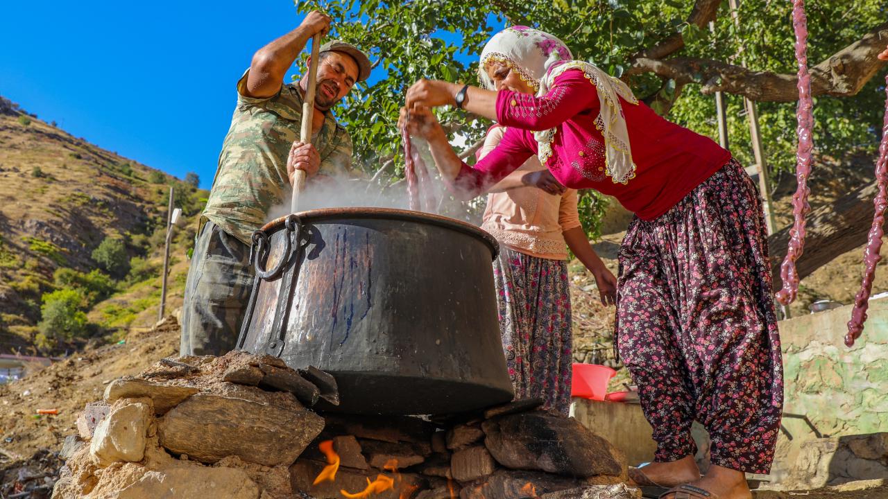Gercüş Ovası`nda yetiştirilen üzümlerden elde edilen pekmez, hem ailelerin besin kaynağı oluyor hem de satışı yapılarak çiftçiye ek gelir kazandırıyor.
