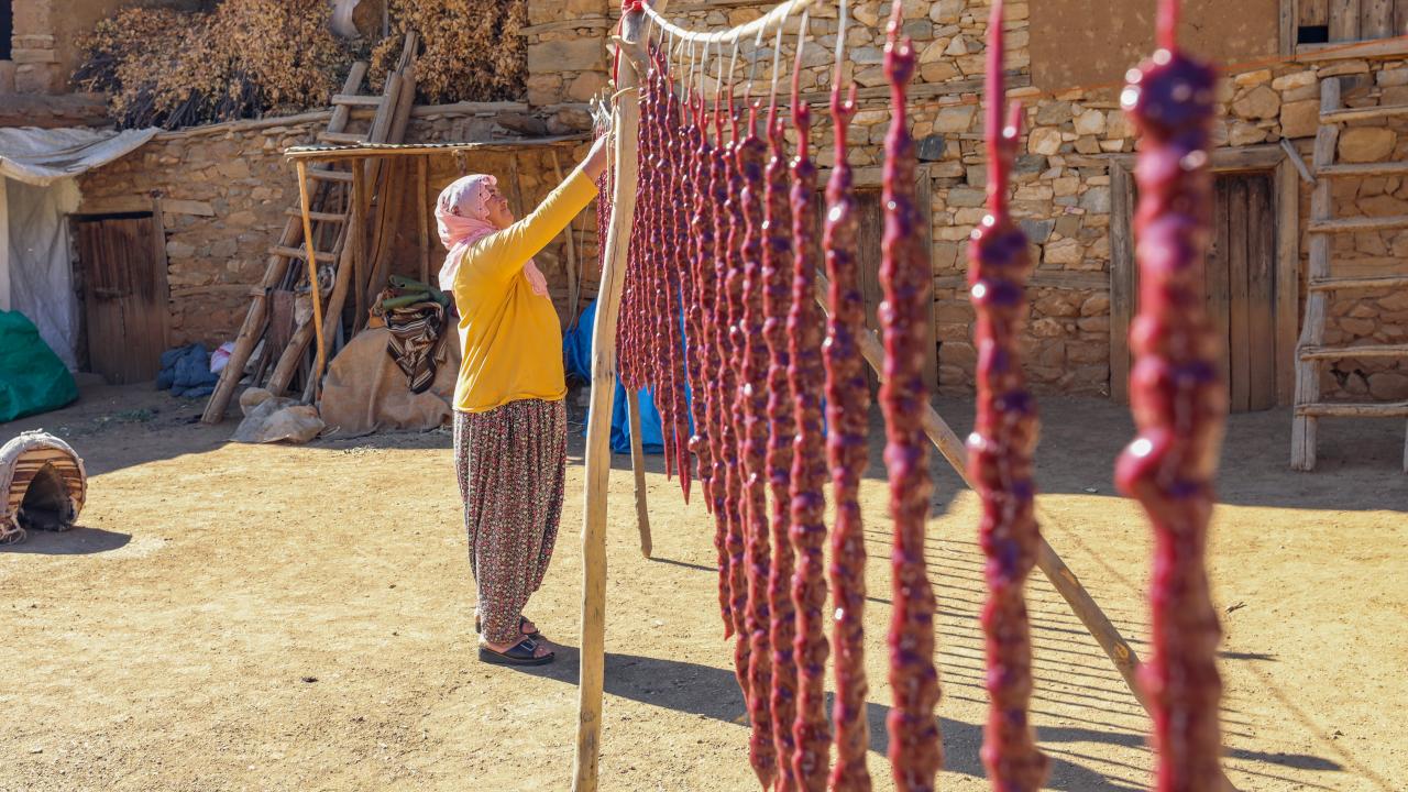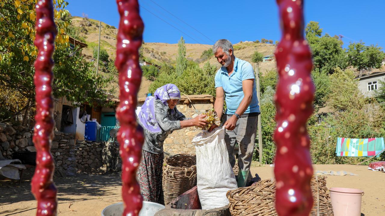 Diyarbakır ve Batman'ın köylerinde bağlarda toplanan üzümlerden kış aylarında tüketilmek ve satışa sunulmak üzere pekmez, cevizli sucuk ve pestil hazırlanıyor.