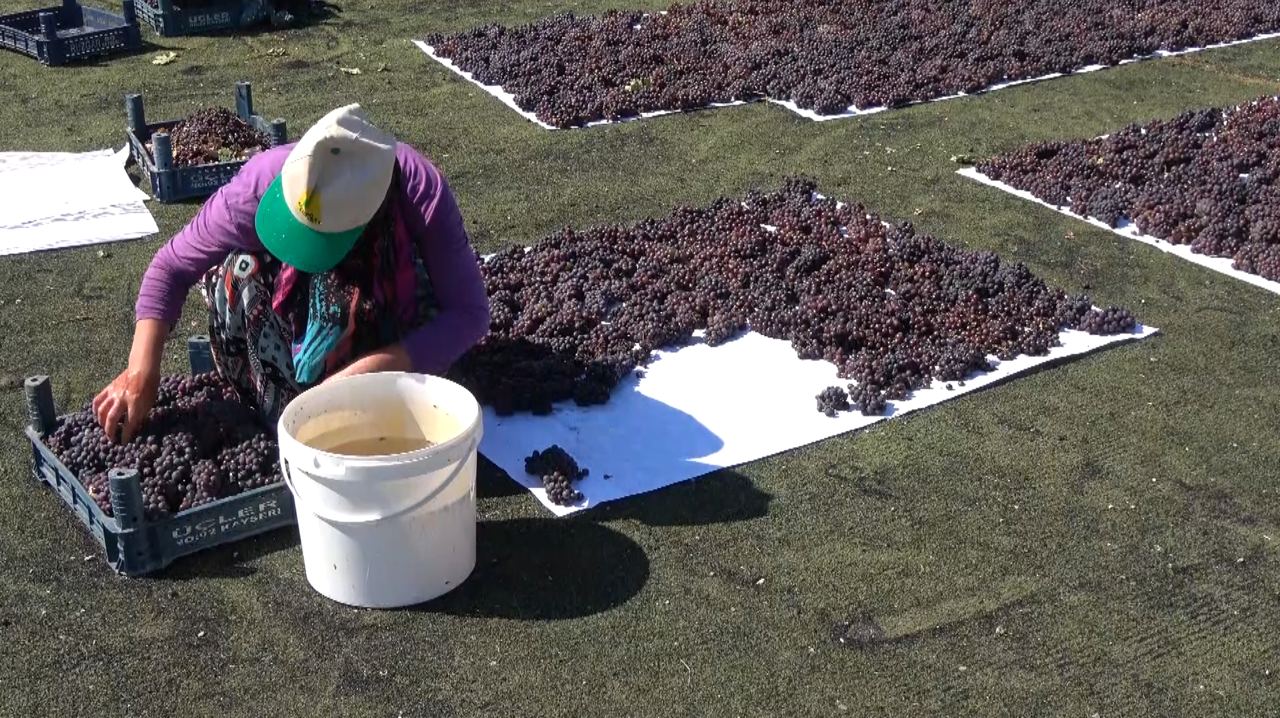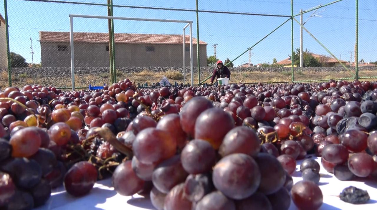 Bağ bozumu sezonu açıldı. Üreticilerde üzümlerini kurutmak için farklı bir yol izledi. Yozgat Yenifakılı'da toplanan üzümler, kurutulmak üzere bir halı sahaya serildi.