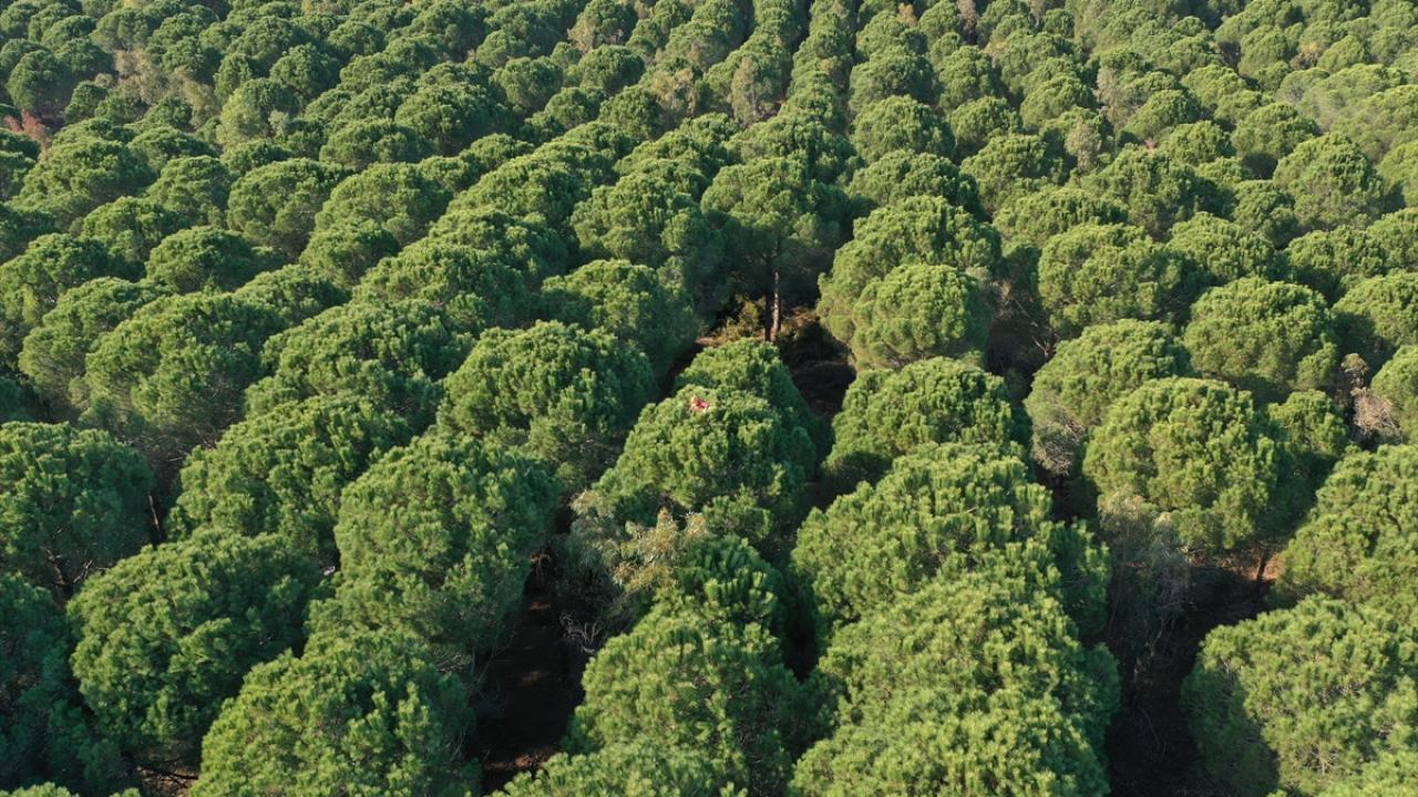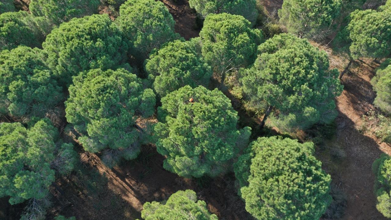 Geçen yıl yaklaşık 200 ton çam fıstığı kozalağı elde edilen ormanda, bu senenin hasadı için işçiler ter dökmeye başladı.