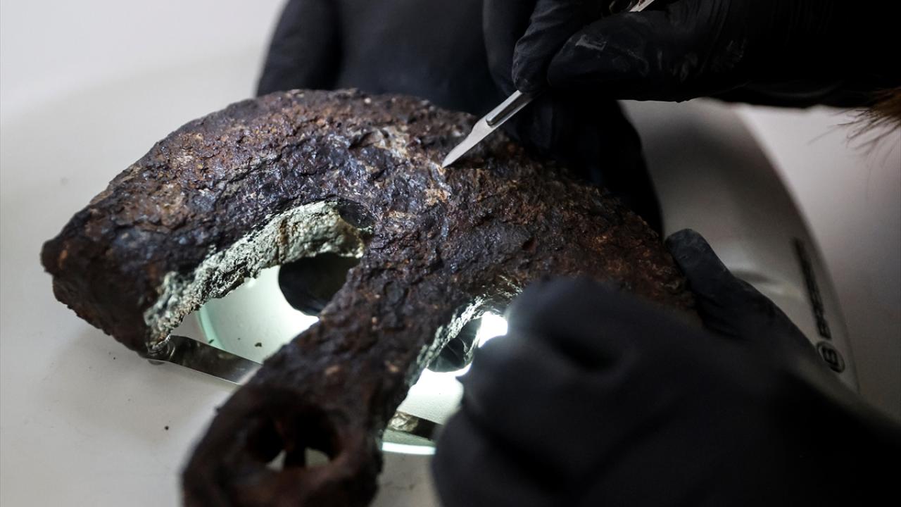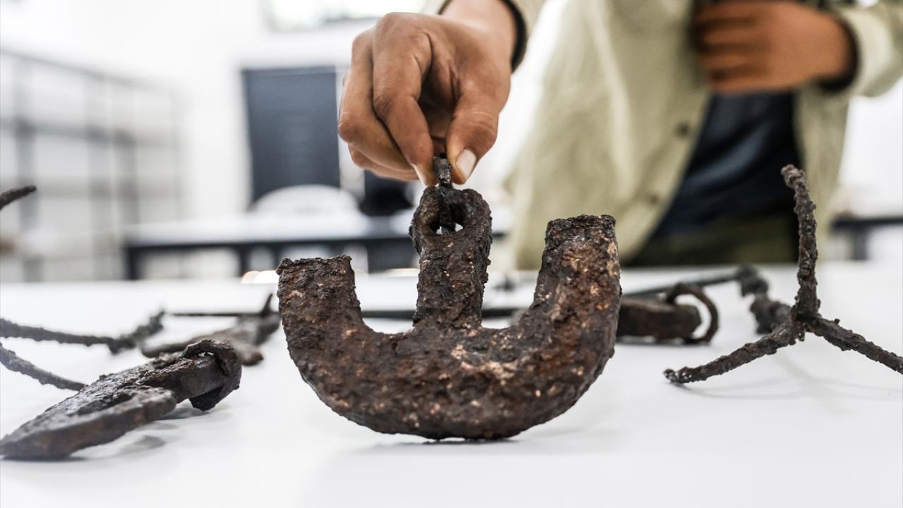 Ekibin, antik kentin ortasından geçen iki sütunlu caddede yaptığı kazıda, 1600 yıllık olduğu değerlendirilen terazi ve harf şeklinde 5 demir ağırlık bulundu.