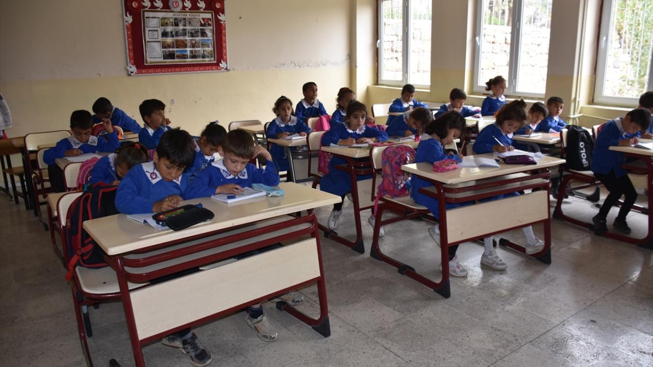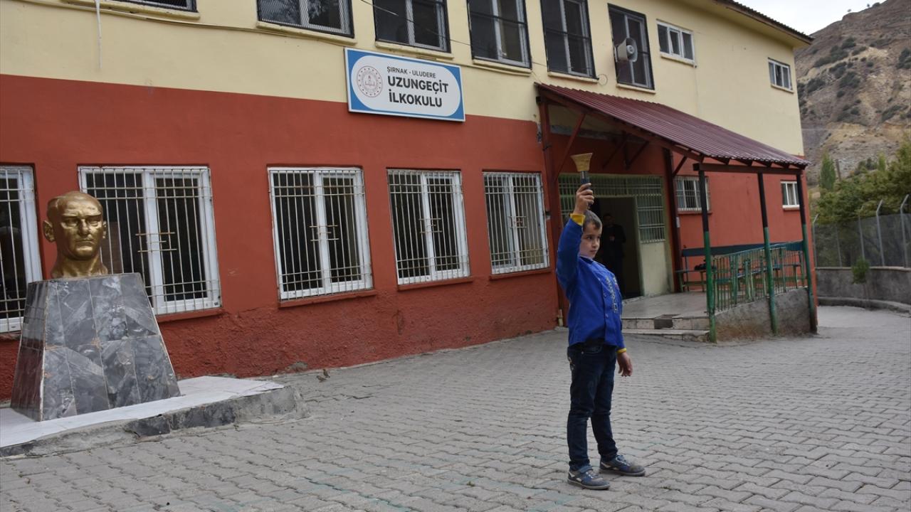 Şırnak'ın Uludere ilçesi Uzungeçit beldesindeki Zübeyde Hanım Anaokulu ve Uzungeçit İlkokulu öğrencileri, beyaz yakalı kırmızı ve mavi önlükleriyle eğitim görüyor.