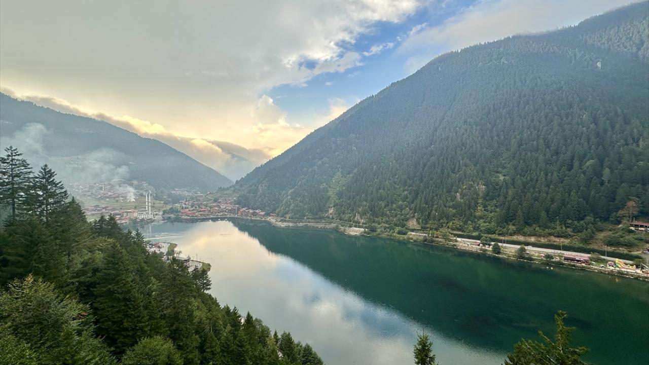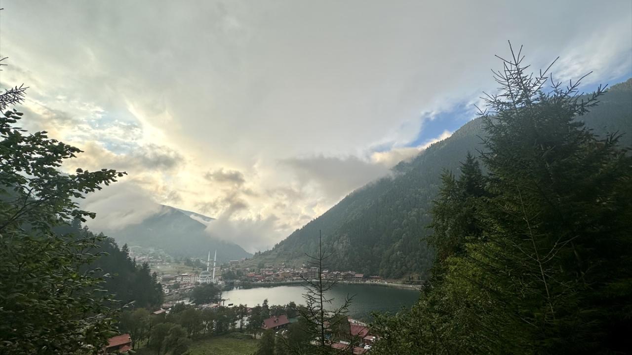 Trabzon'un Çaykara ilçesindeki Uzungöl Tabiat Parkı, sonbaharın gelmesiyle renklerini değiştirmeye başladı.