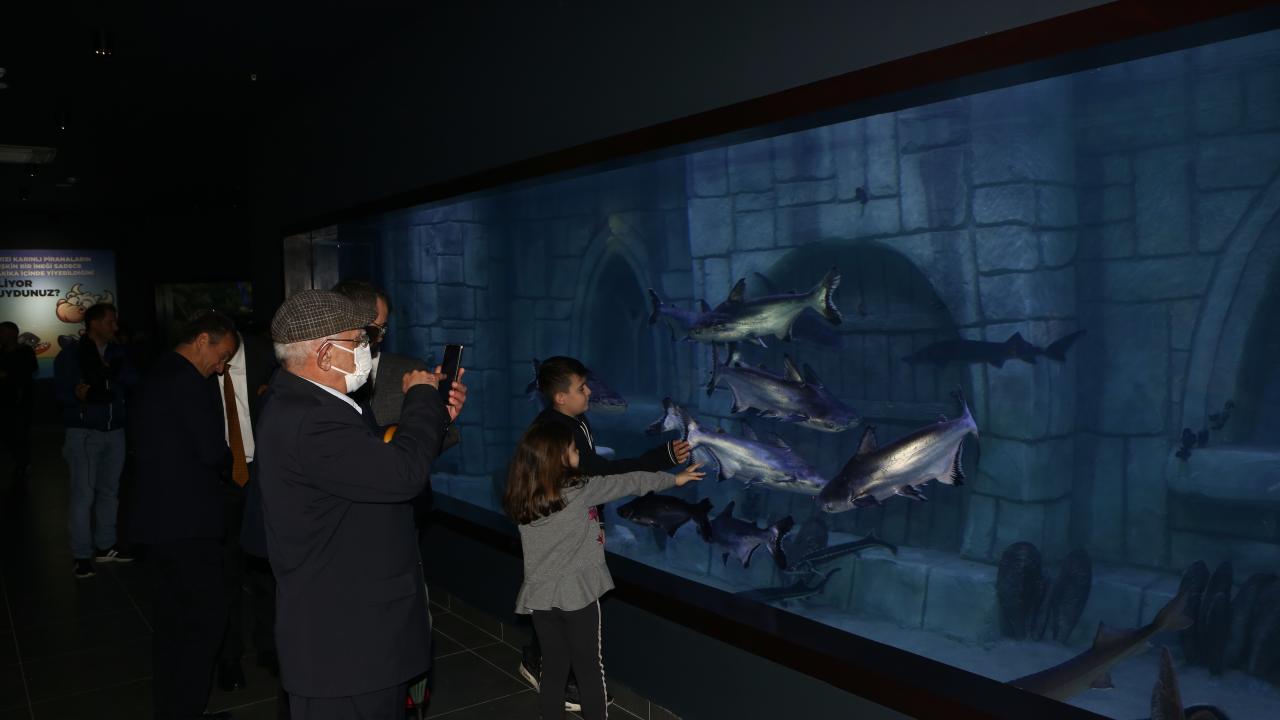 Ortahisar Belediye Başkanı Ahmet Metin Genç ise akvaryumda tatlı su, tuzlu su ve okyanus canlılarının yer aldığını belirterek, "Diğer akvaryumlarda olmayıp da burada olan istisnai bir tür var. O da bordo-mavi balıklar... Gerçekten bordo-maviler. Birazdan göreceksiniz. Afrika`nın Malawi Gölü`nden getirdik bu balıkları. Şunu da belirteyim; İstanbul, Ankara, Antalya`da da akvaryumlar var. Ankara`nın doğusunda sadece Trabzon`umuzda bu akvaryumu yaptık. Oradaki fiyatlara nazaran çok uygun bir fiyatla açılışını gerçekleştireceğiz ve hemşehrilerimizin, milletimizin hizmetine sunacağız." açıklamasını yaptı.