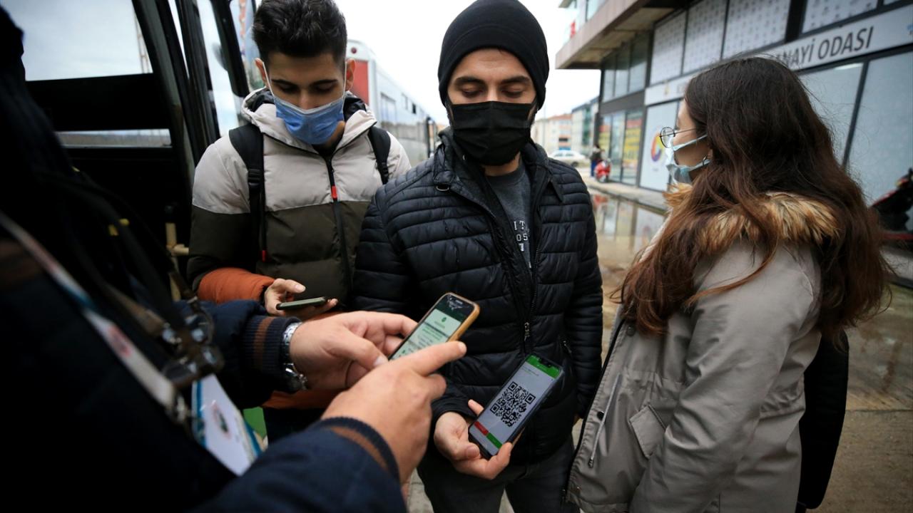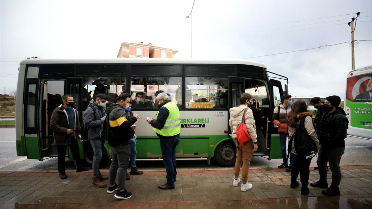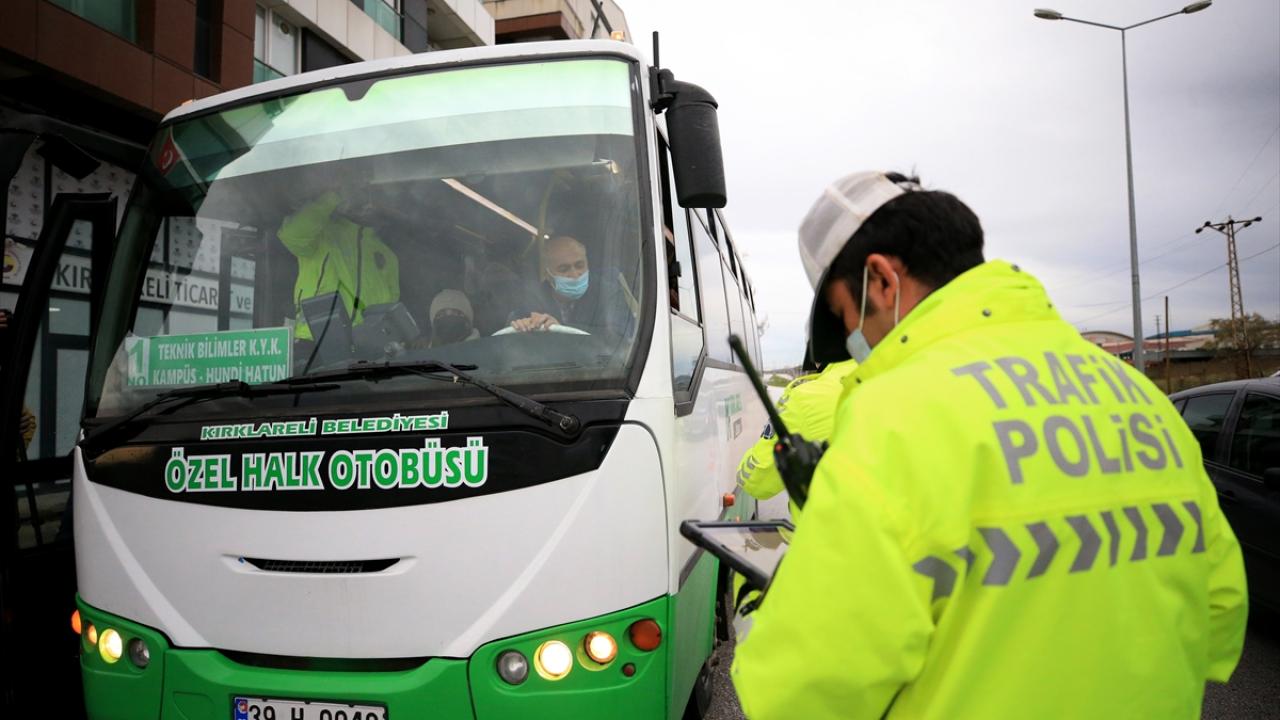 Yeni tip koronavirüs (Covid-19) vakalarının artış gösterdiği Kırklareli'nde, salgınla mücadele kapsamında toplu taşıma araçlarını kullanan yolculara yönelik denetim yapıldı.