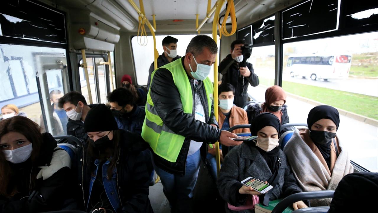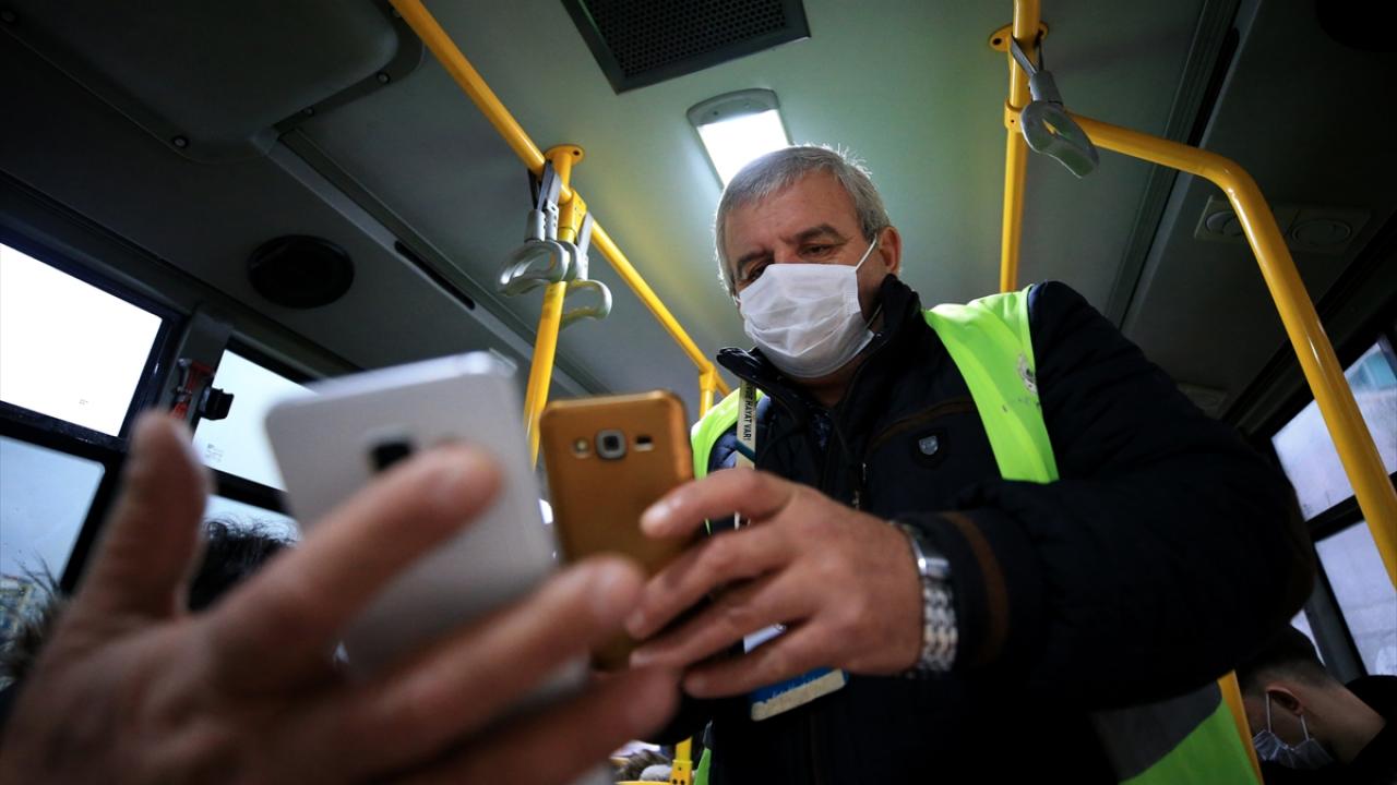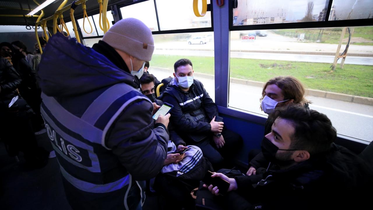 Toplu taşıma araçlarında zaman zaman, ayakta seyahat eden yolcular minibüslerden indirilerek denetim yapıldı.