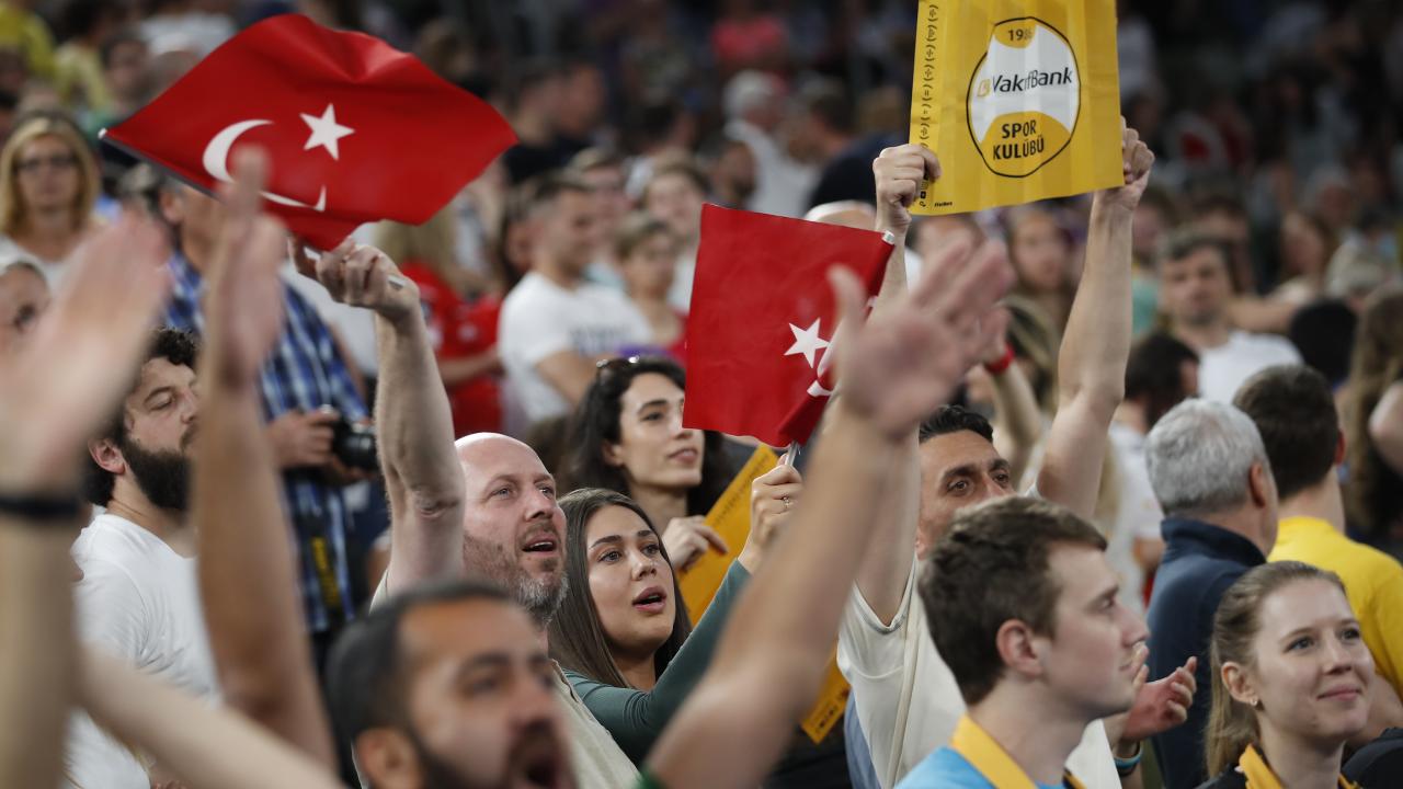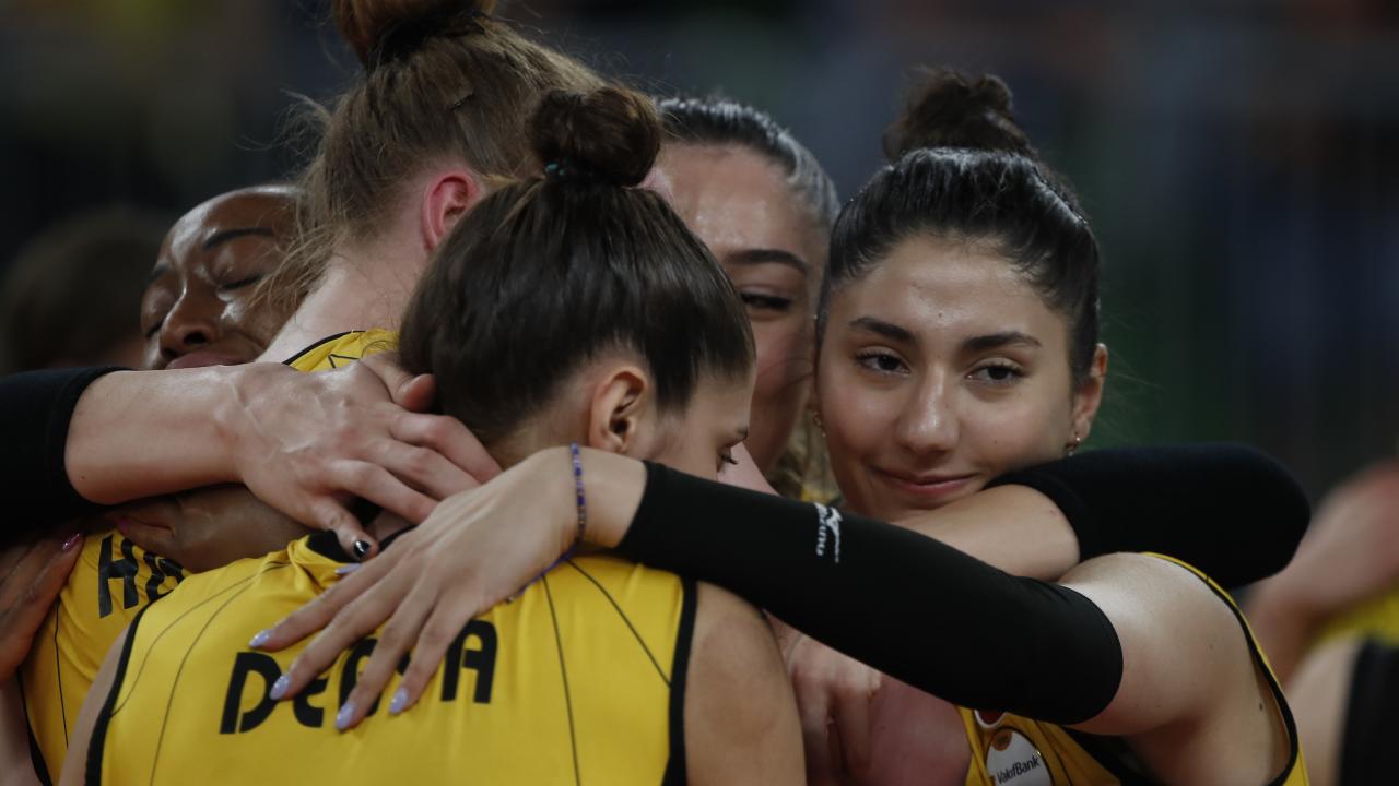 Sarı-siyahlılar, sevinçlerini karşılaşmayı salonda takip eden Türk voleybolseverlerle paylaştı.