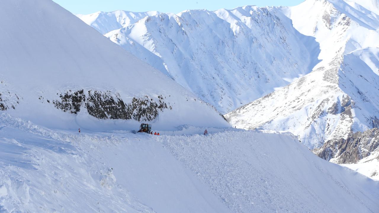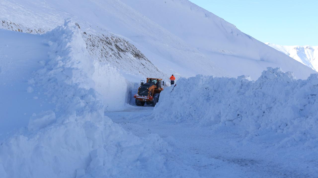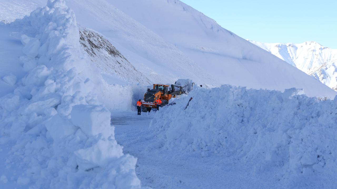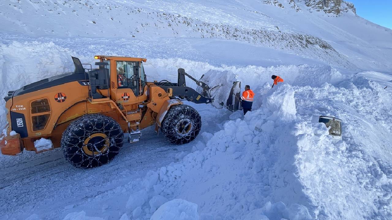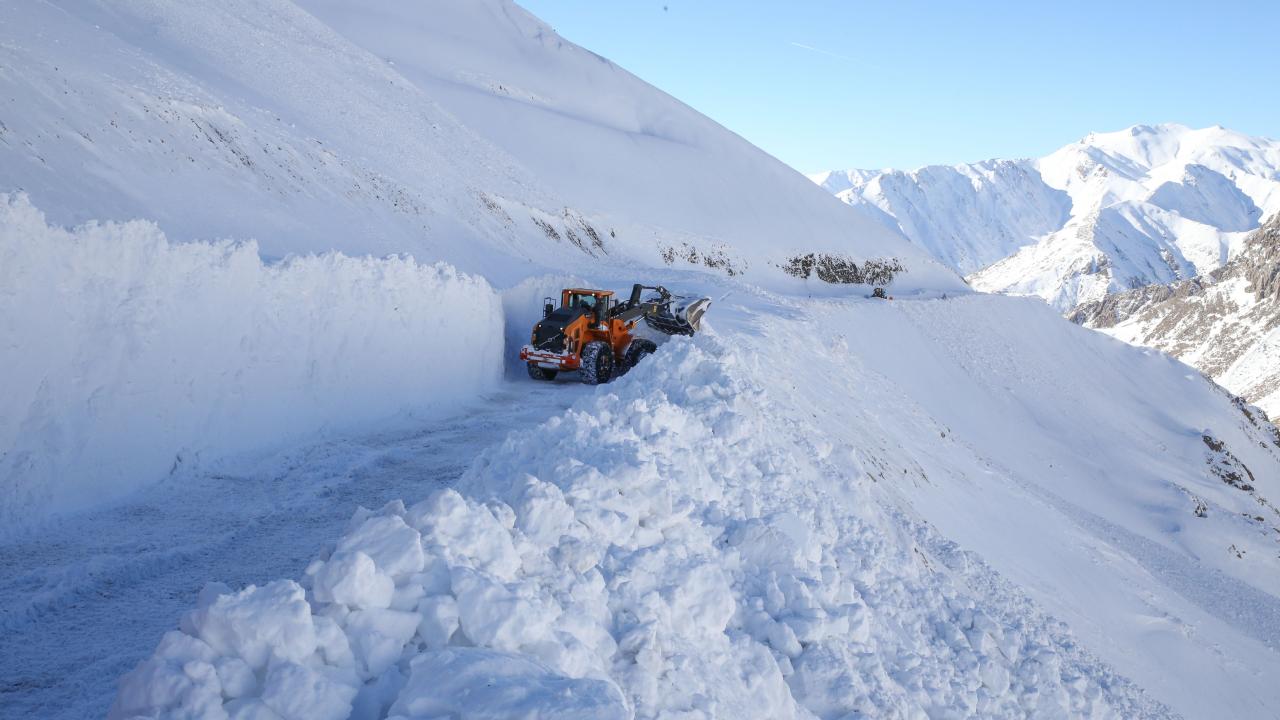 Kar kalınlığının yer yer 3 metreyi bulduğu 3 bin rakımlı Karabet Geçidi’ne ulaşan ekipler, düşen çığlar nedeniyle yolda biriken kar kütlelerini temizledi.