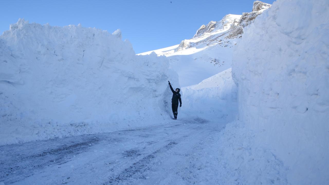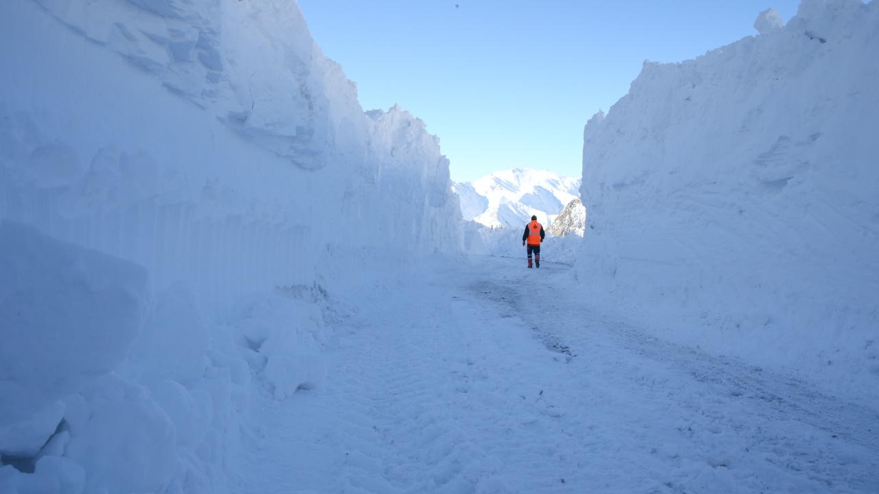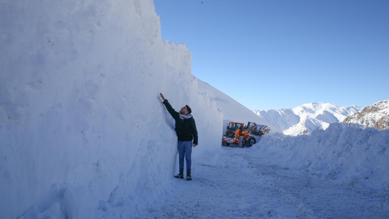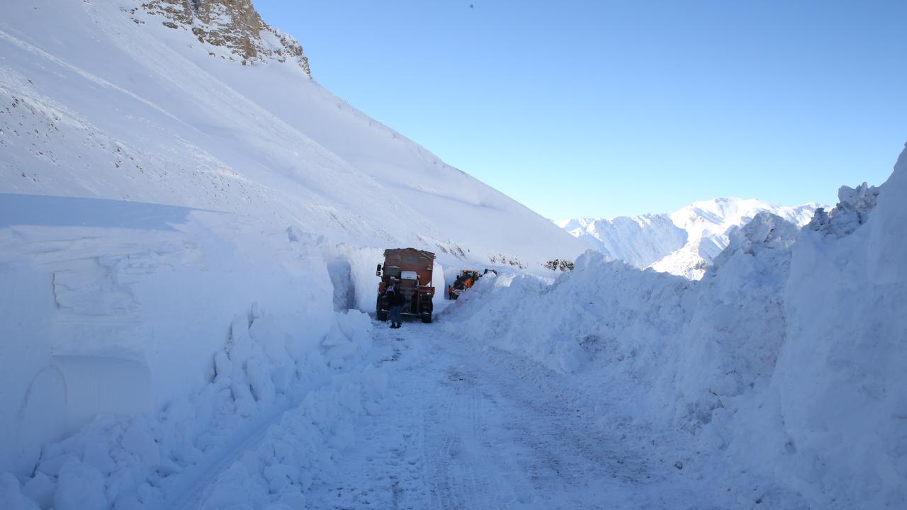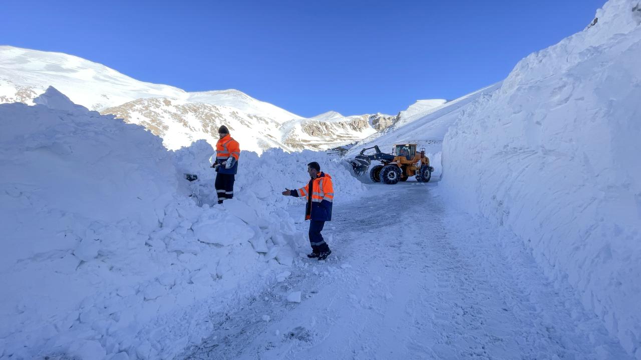 Kar kalınlığının yer yer 3 metreyi bulduğu 3 bin rakımlı Karabet Geçidi’ne ulaşan ekipler, düşen çığlar nedeniyle yolda biriken kar kütlelerini temizledi.
